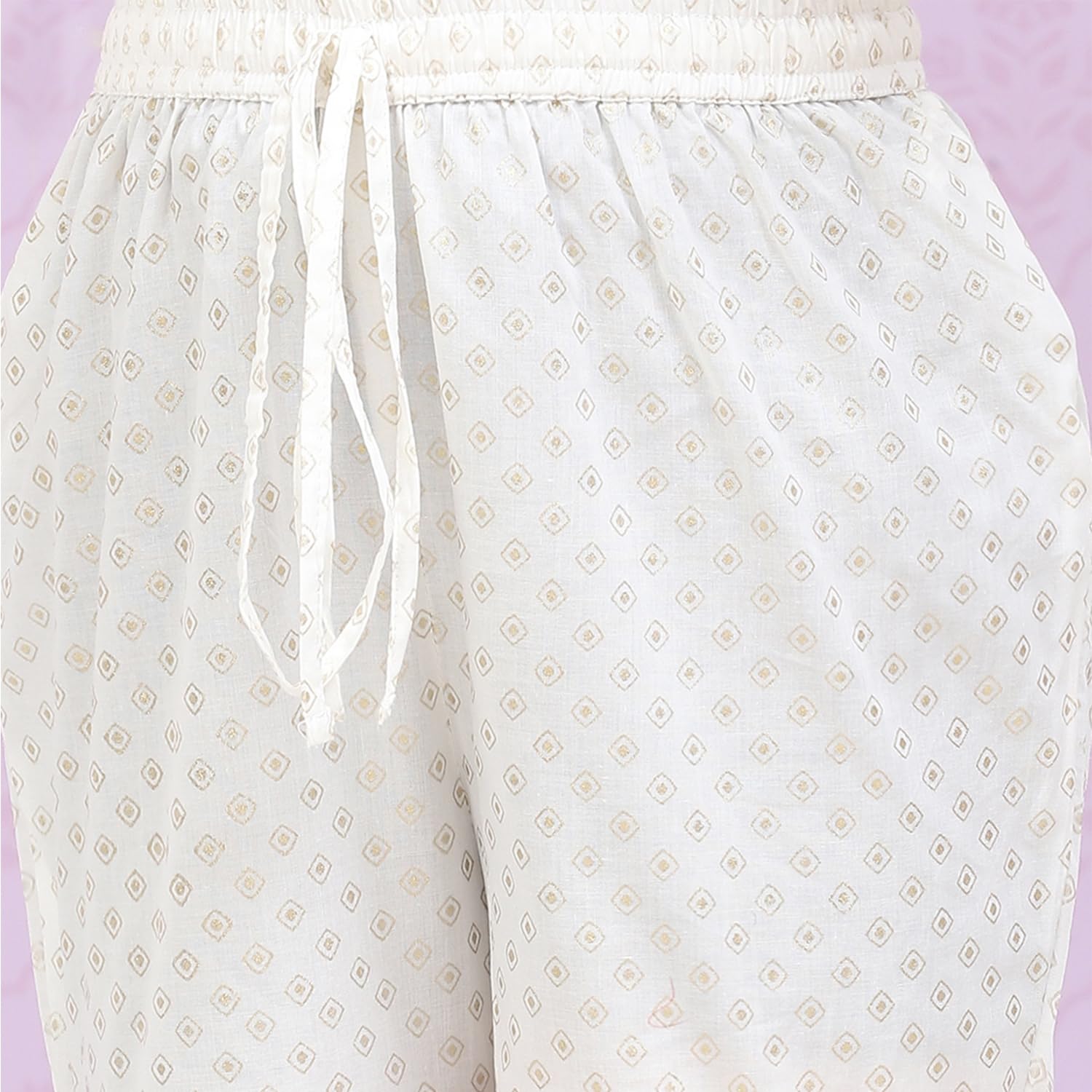BIBA White & Red Cotton Straight Kurta Sharara Suit Set