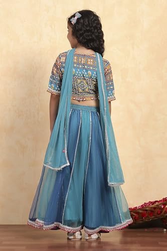 Biba Girls Blue Cotton Printed Kalidar Lehenga Set_4-5Y