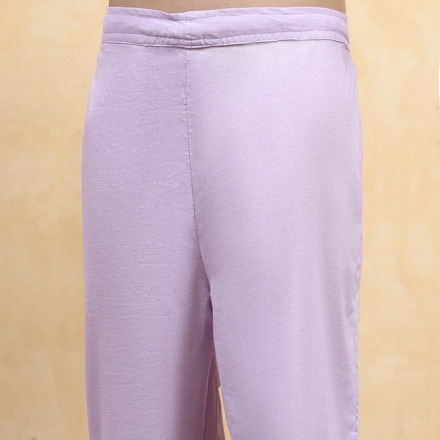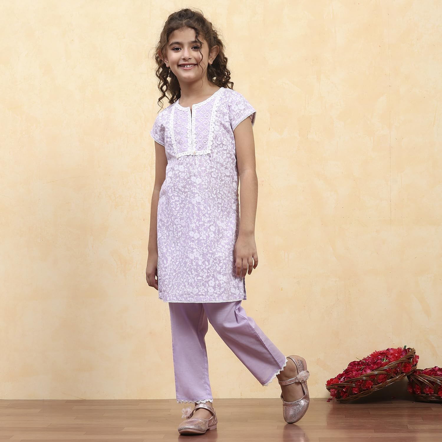Biba Girl's Lavender Cotton Straight Printed Kurta Pants Set