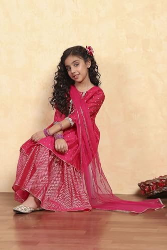 Biba Girl's Pink Polyester Blend Printed Gathered Suit Set