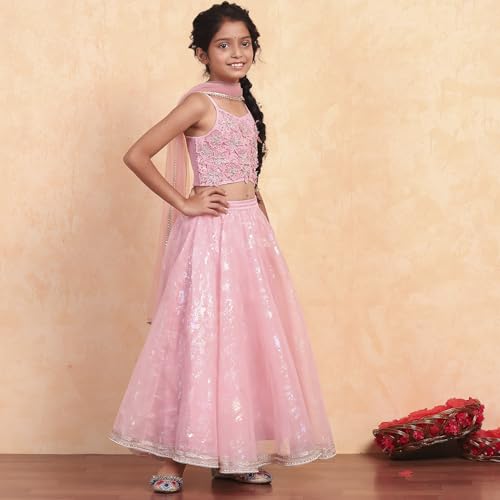 Biba Girls Pink Viscose Printed Flared Lehenga Set_8-9Y