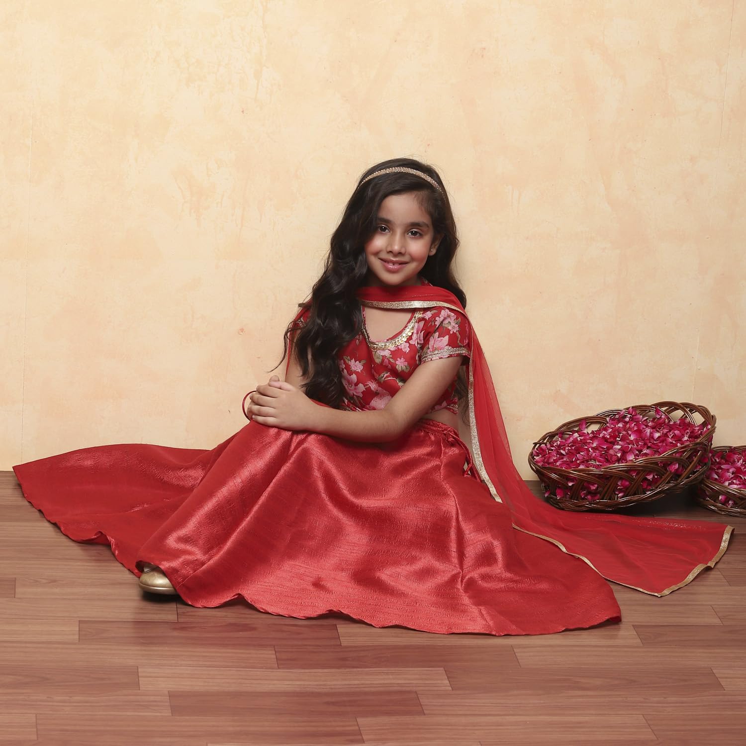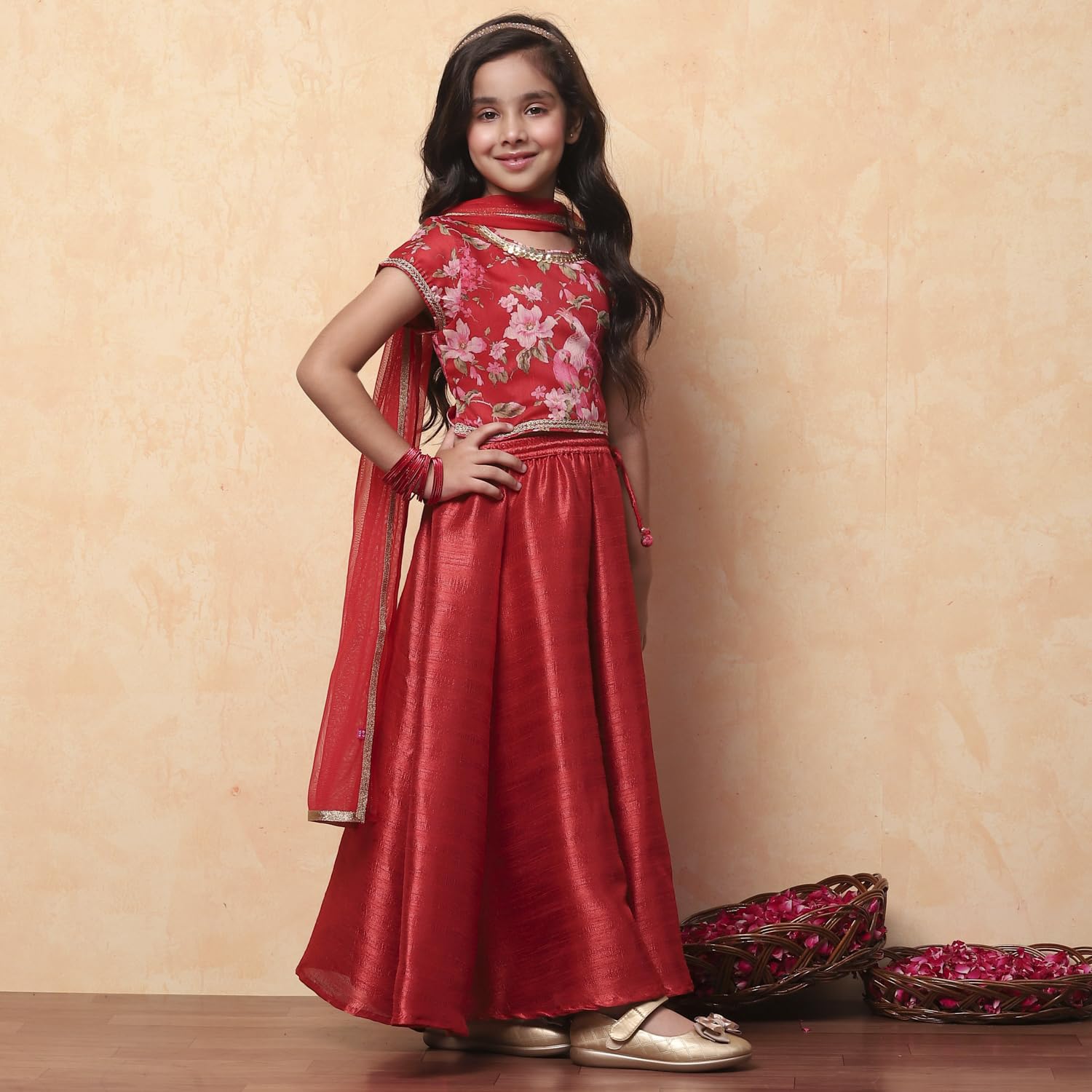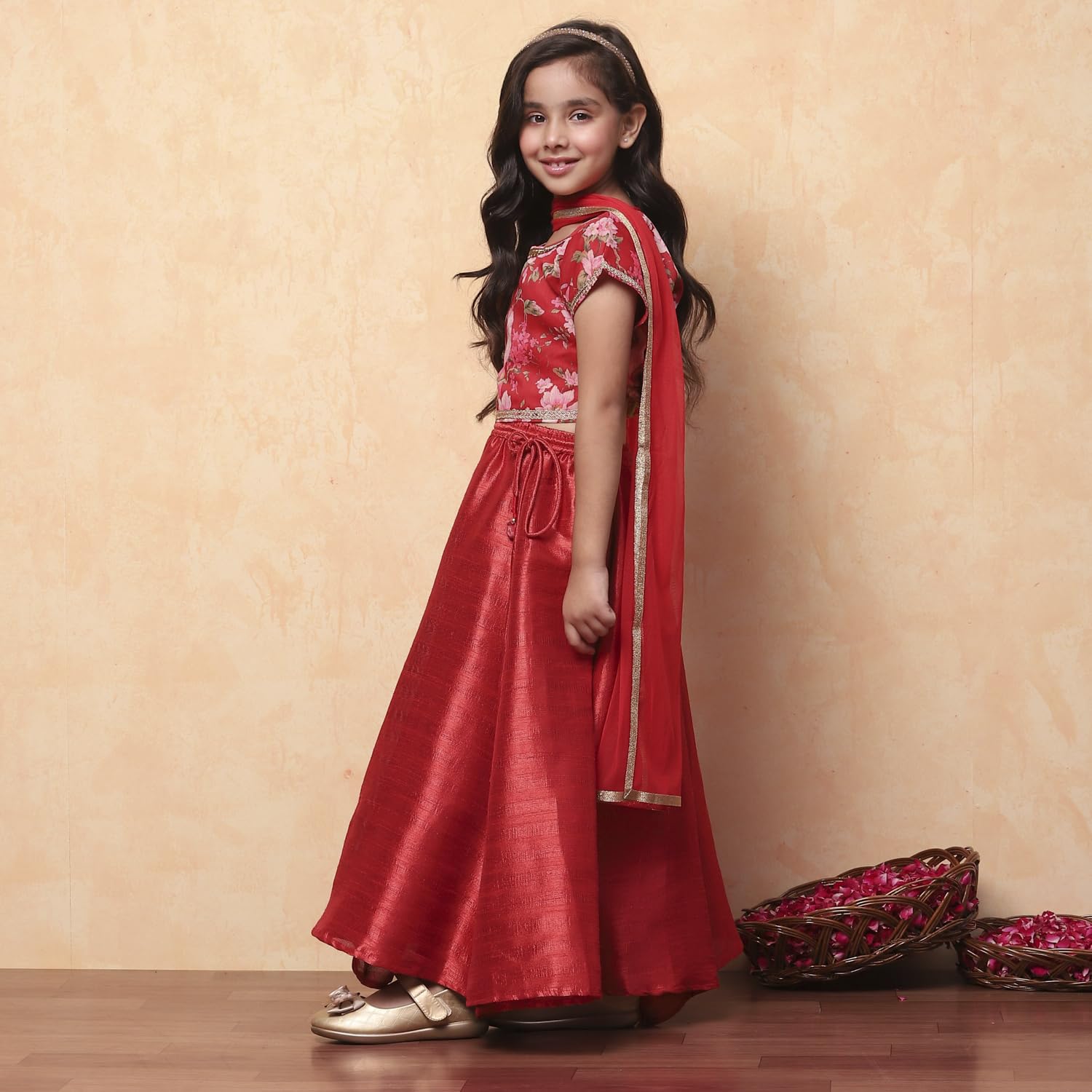 Biba Girls Red Straight Lehenga Choli Set