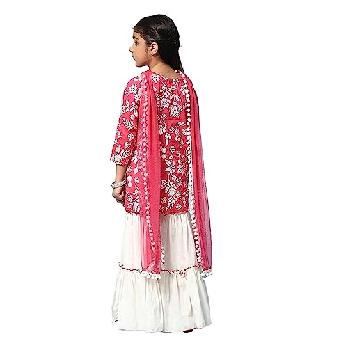 BIBA Printed Cotton Straight Fit Girls Kurta Sharara Dupatta Set (STRAWBERRY PINK, 10-11Y)