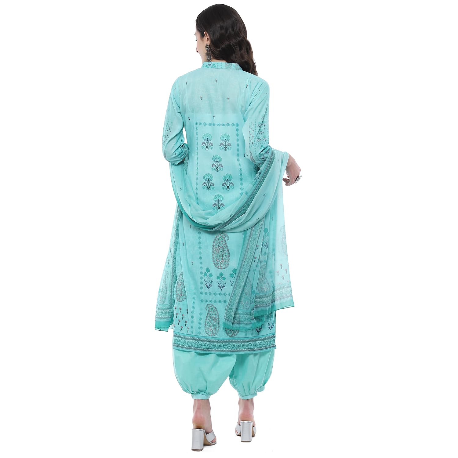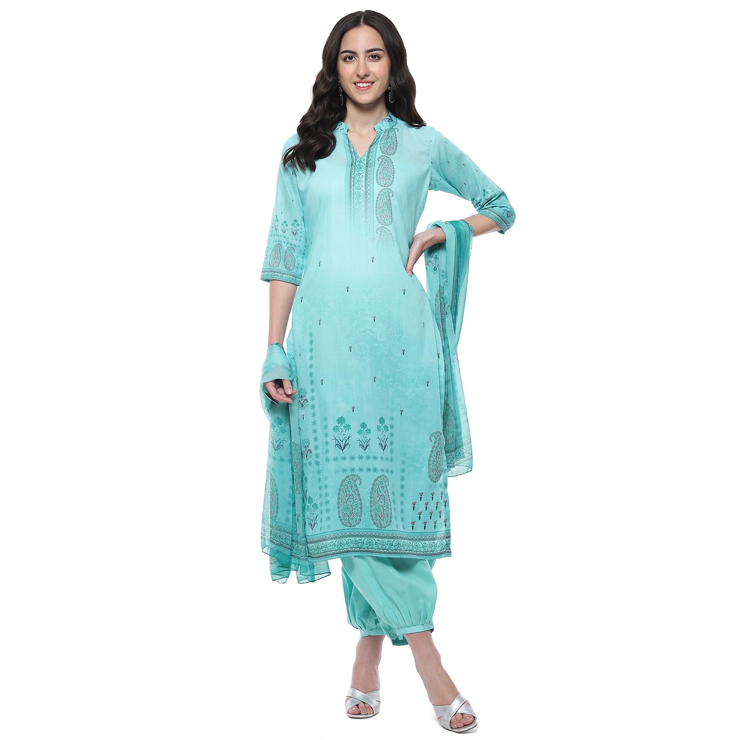 BIBA Women Cotton Blend Digital Print Unstitched Suit Set,Blue