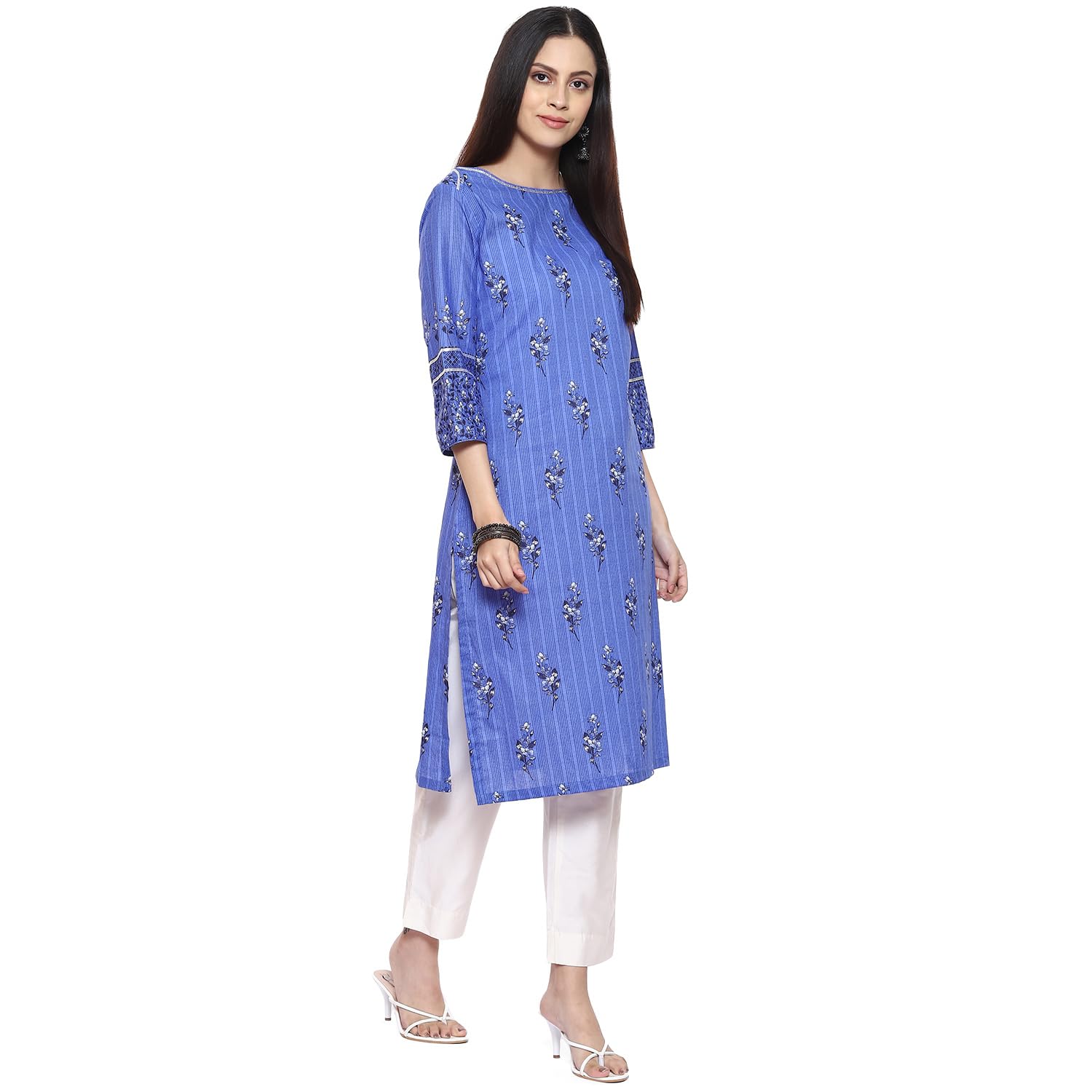 BIBA Women Cotton Printed Straight Mix and Match Regular Fit Tunic Shirt(Mnmassorted16642E_Indigo_38), Purple
