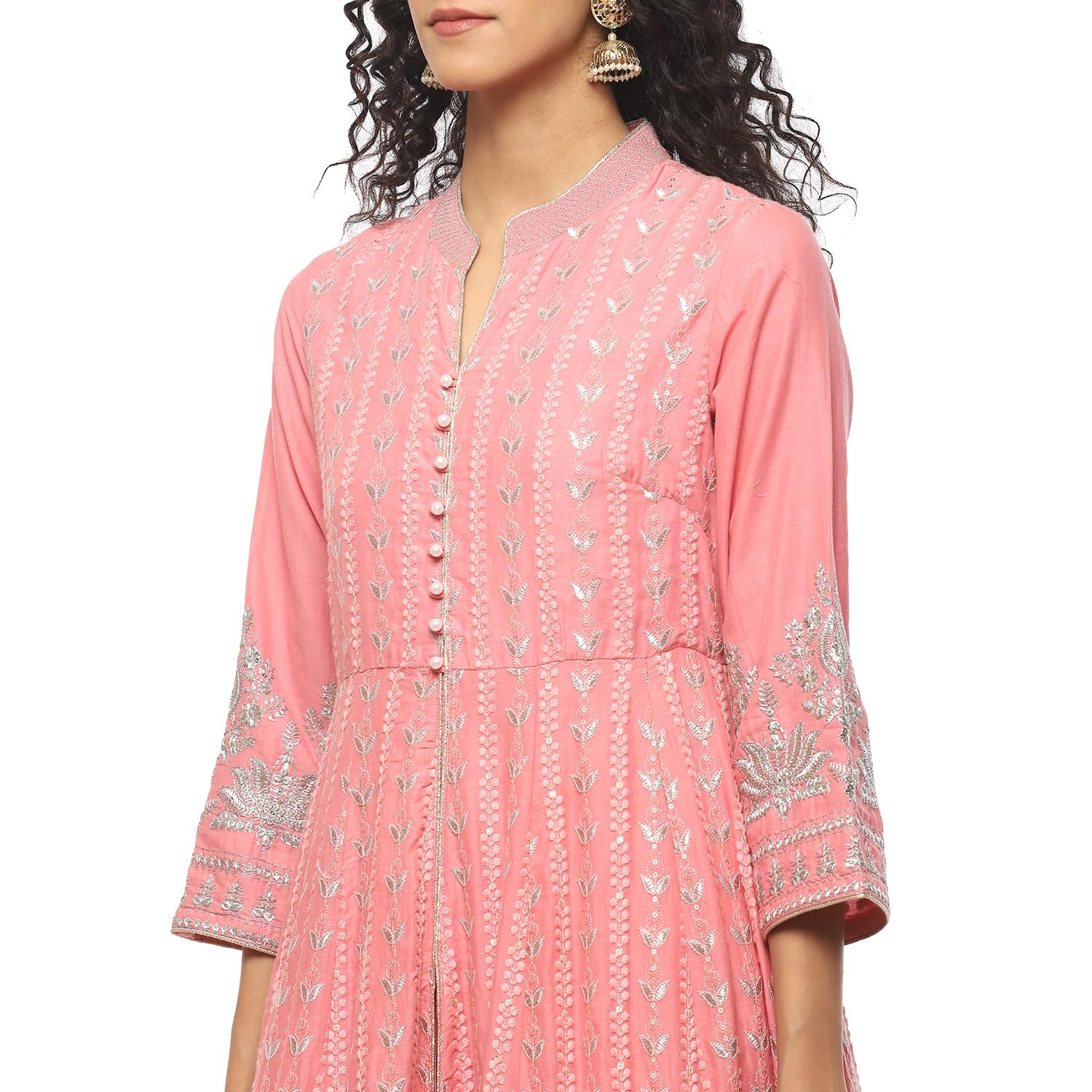 BIBA WOMEN EMBROIDERY ANARKALI SALWAR KURTA DUPATTA(SKD5876_BLUSH PNK_34)