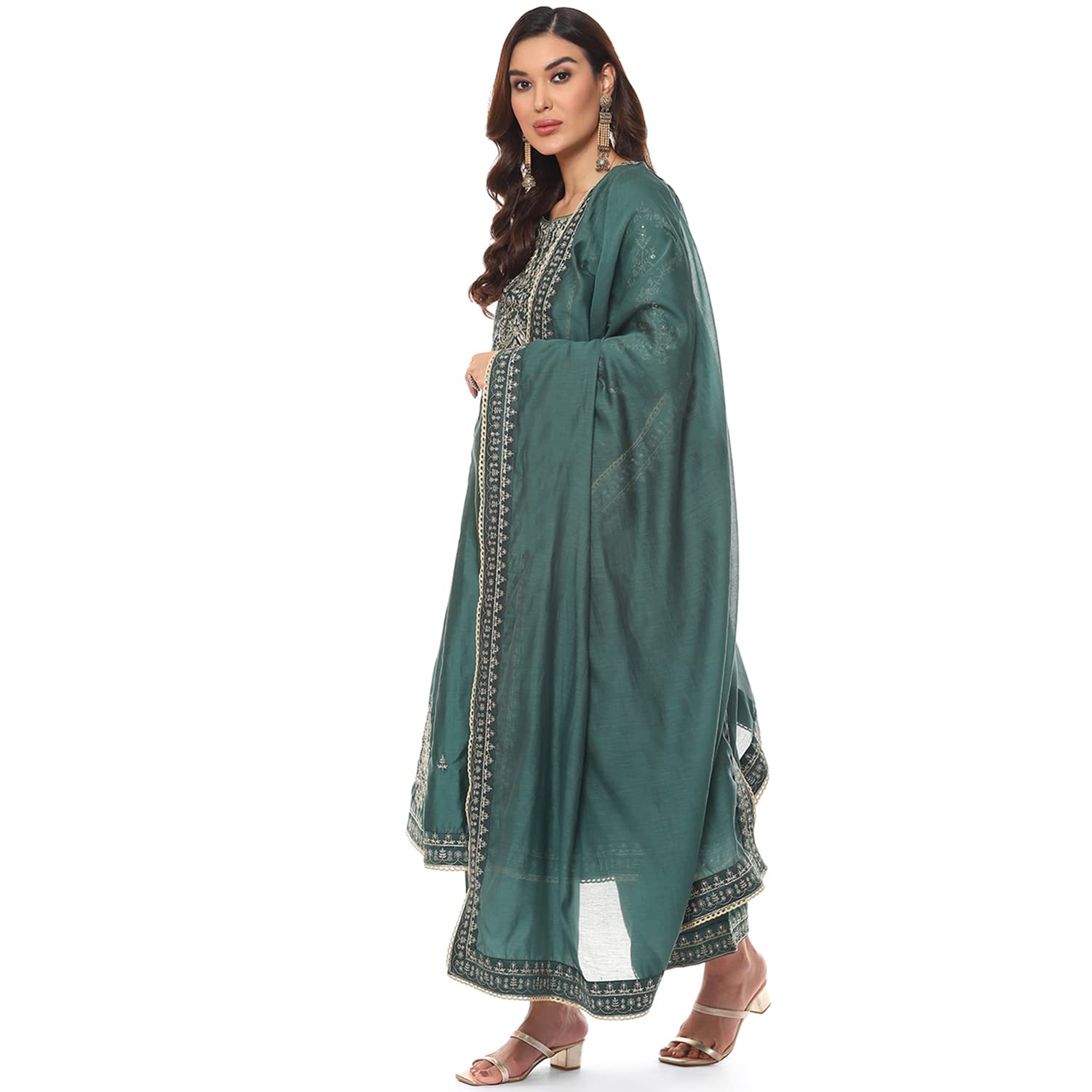 BIBA WOMEN EMBROIDERY STRAIGHT SALWAR KURTA DUPATTA(SKDKINARI7810_DARK GREEN_36)