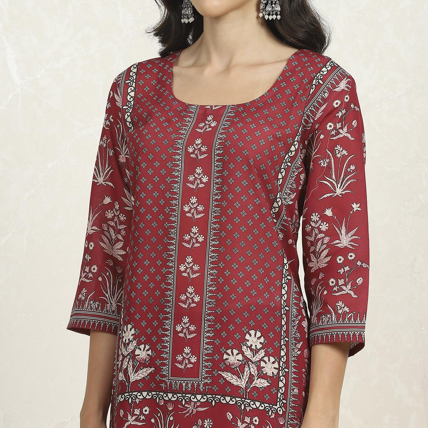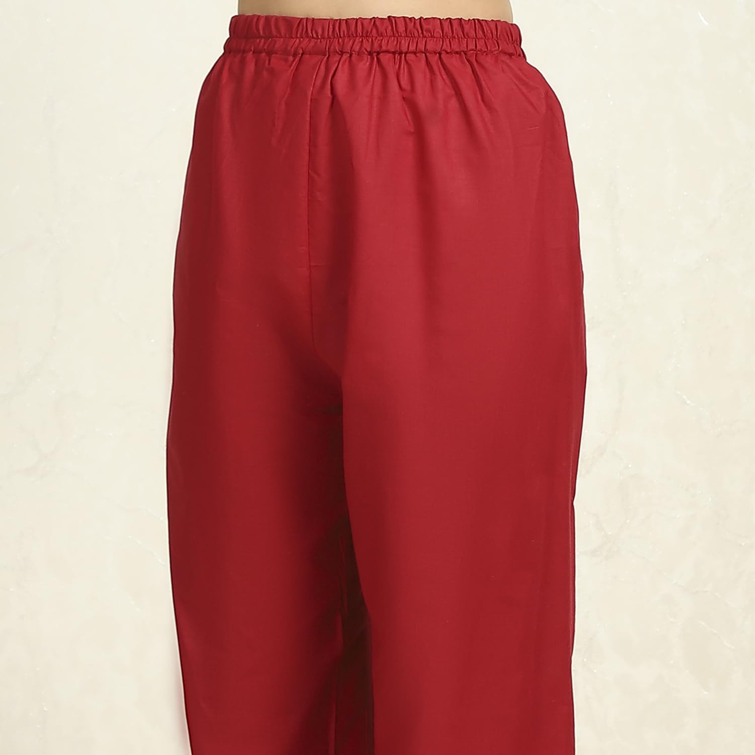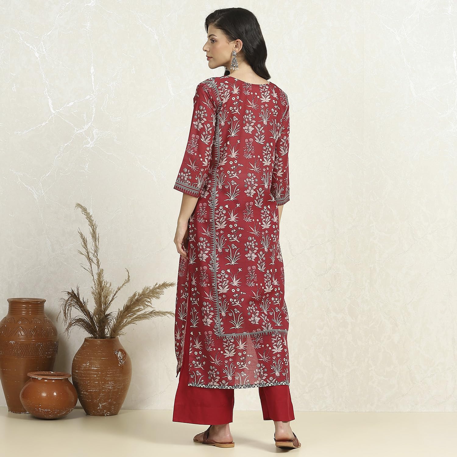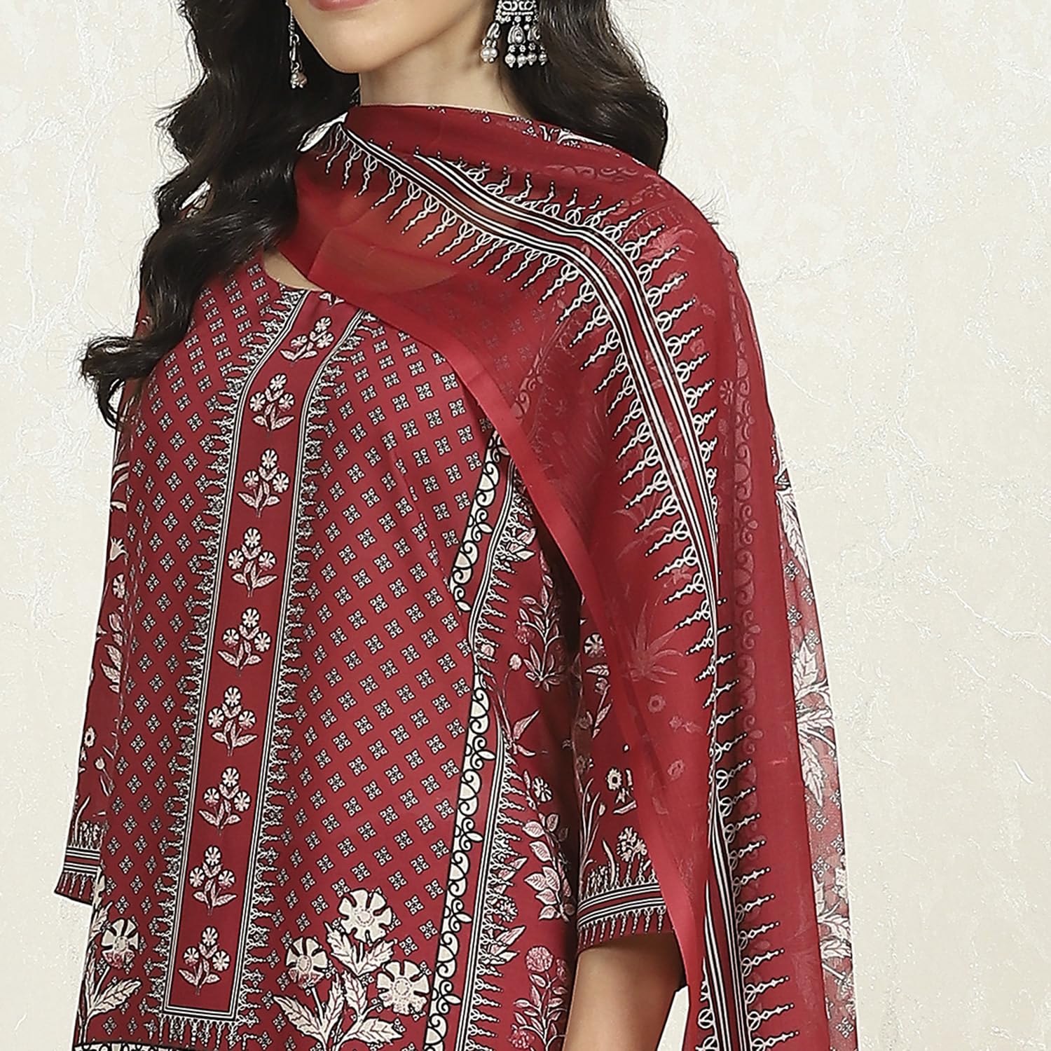 Biba Women Green-Maroon Cotton Unstitched Suit Set