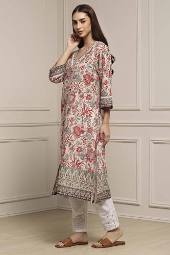 Biba Women Off White Cotton Straight Printed Kurta_42