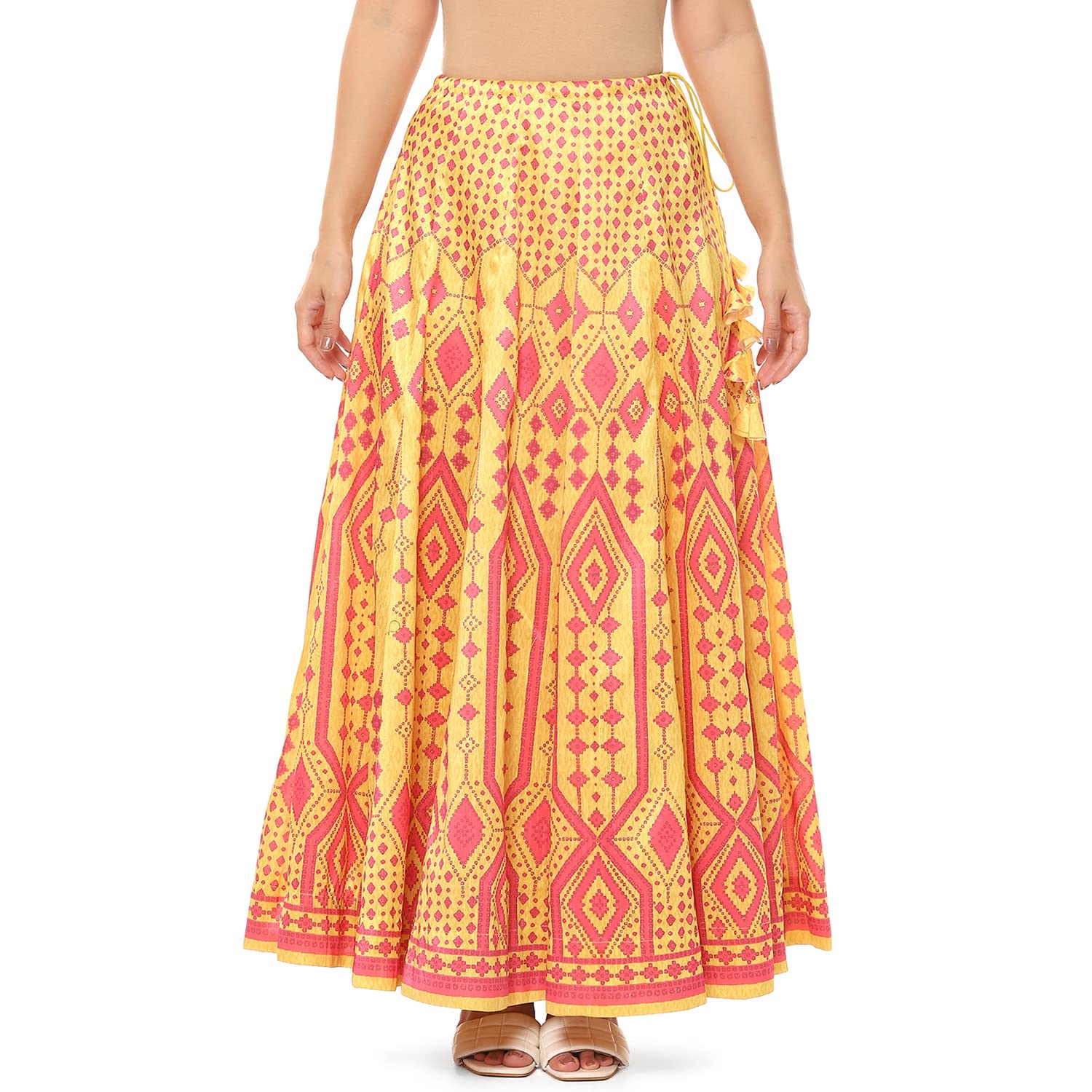 BIBA Women Printed Flared Mix and Match(SKIRTS/T18784_Yellow_M)