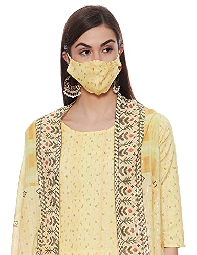BIBA WOMEN PRINTED NARROW SALWAR KURTA DUPATTA(SKDSHRUG SE7378_LIGHT YELLOW_38)