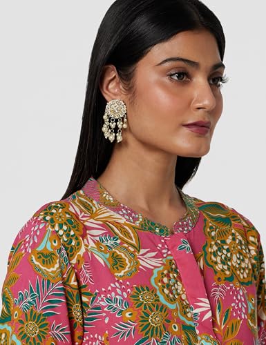 BIBA Women Printed Straight Calf Length Mix and Match Dress(Casual D2162_Fuchsia_40), 2XL