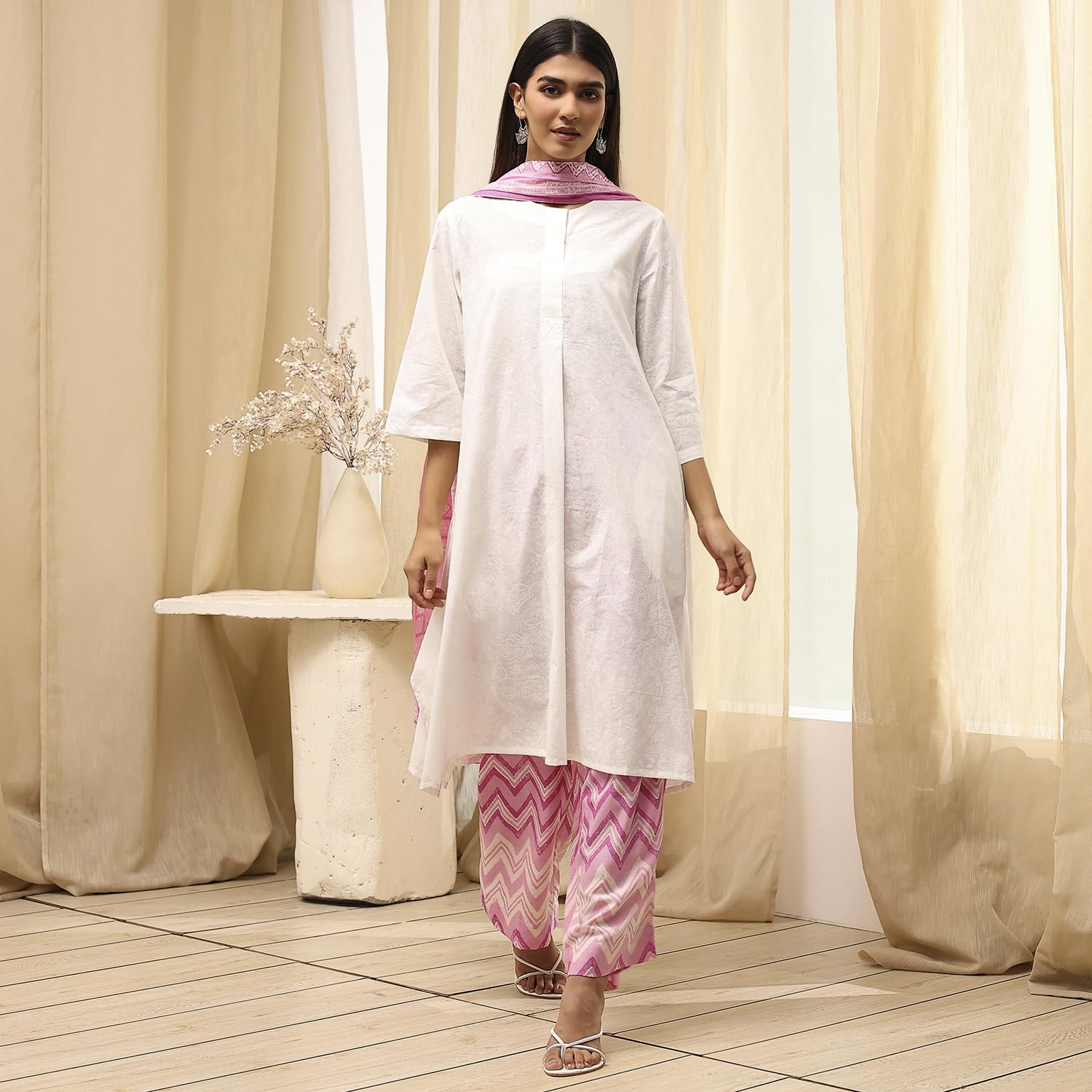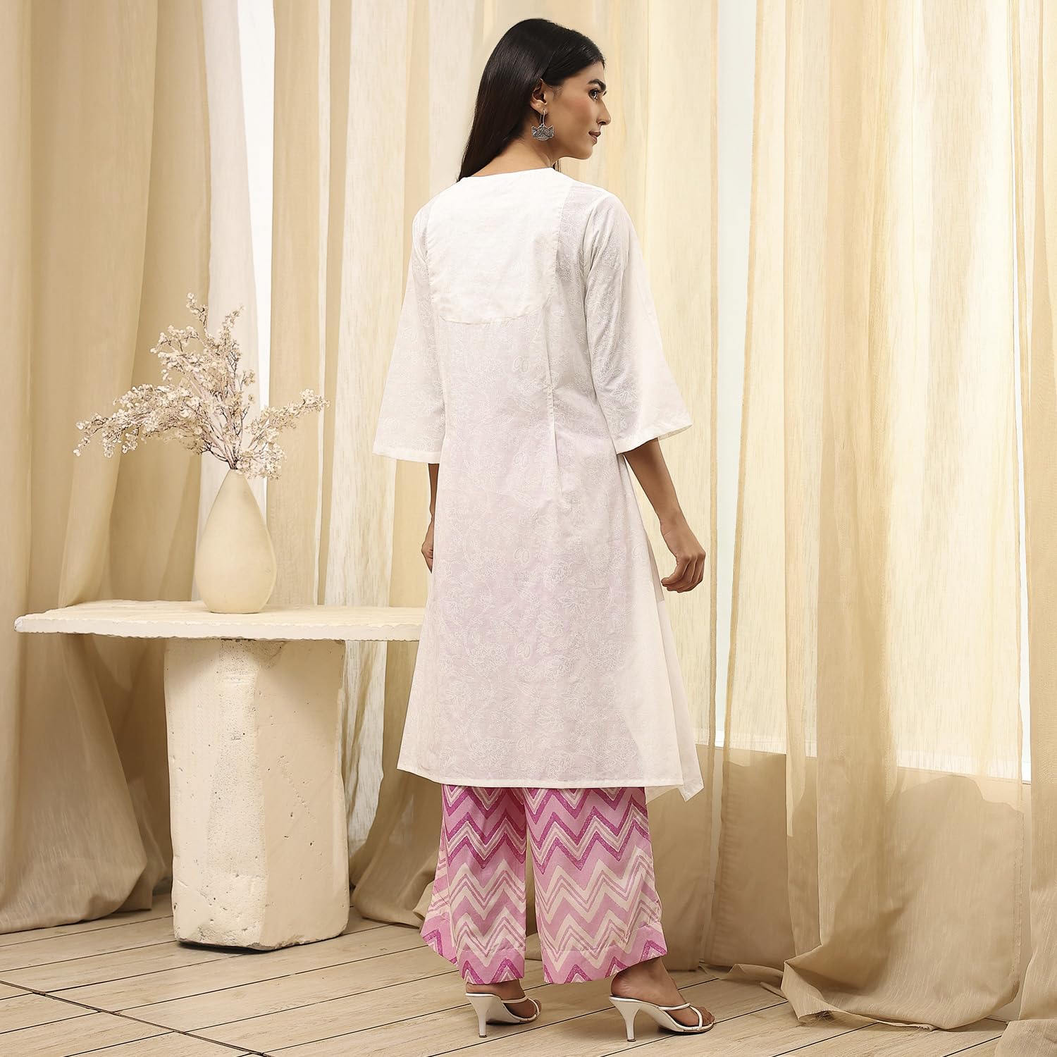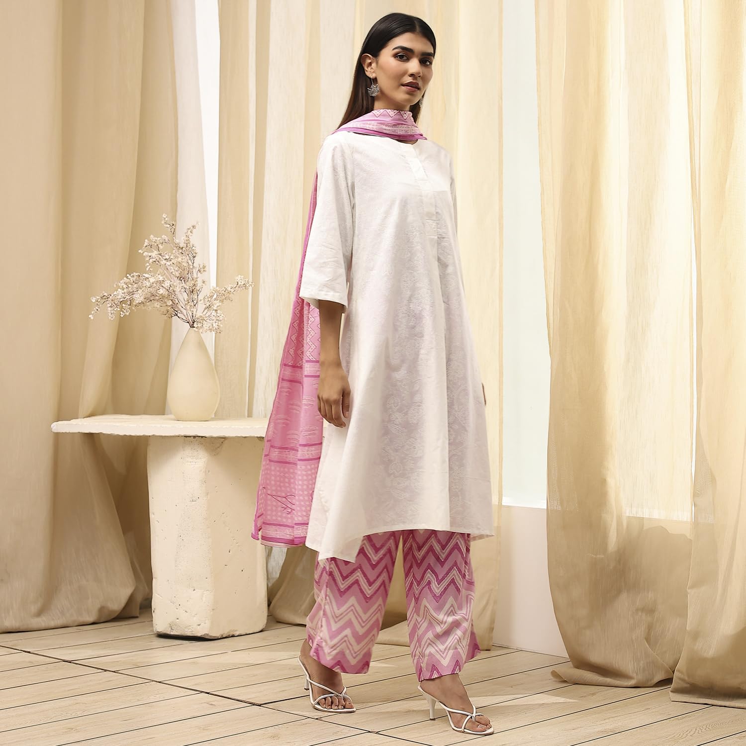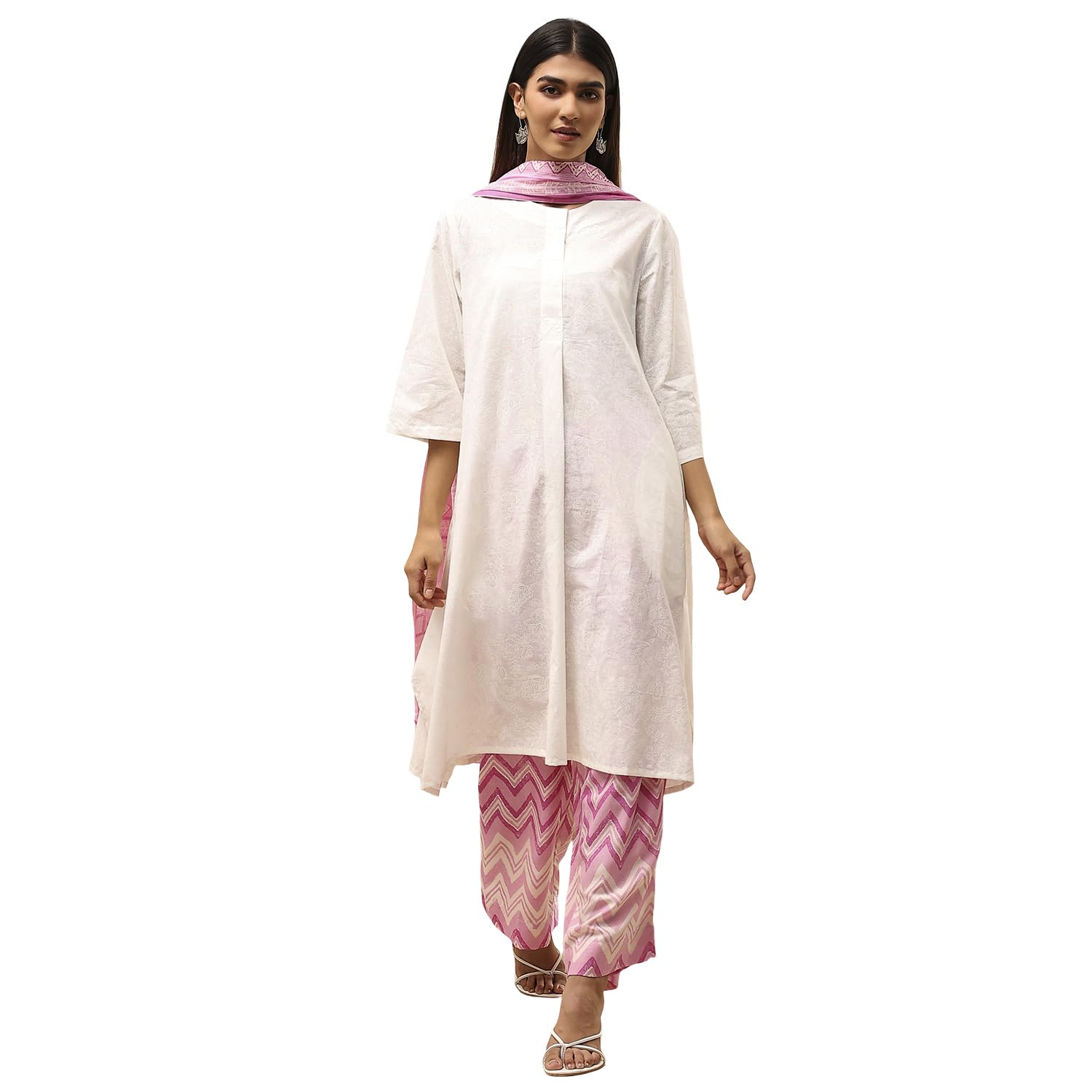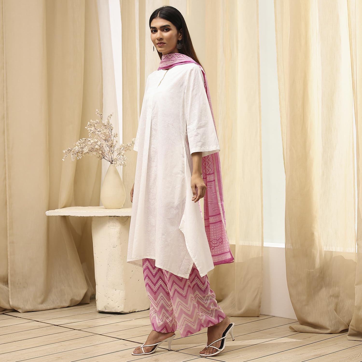 Biba Women's 60'S Cambric Kurta Set (SKD8052ESS25PNK_Pink