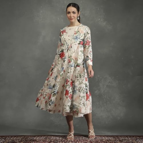 BIBA Women's Cotton Blend Mini Dress (CKD10954AW24IVRY_Ivory