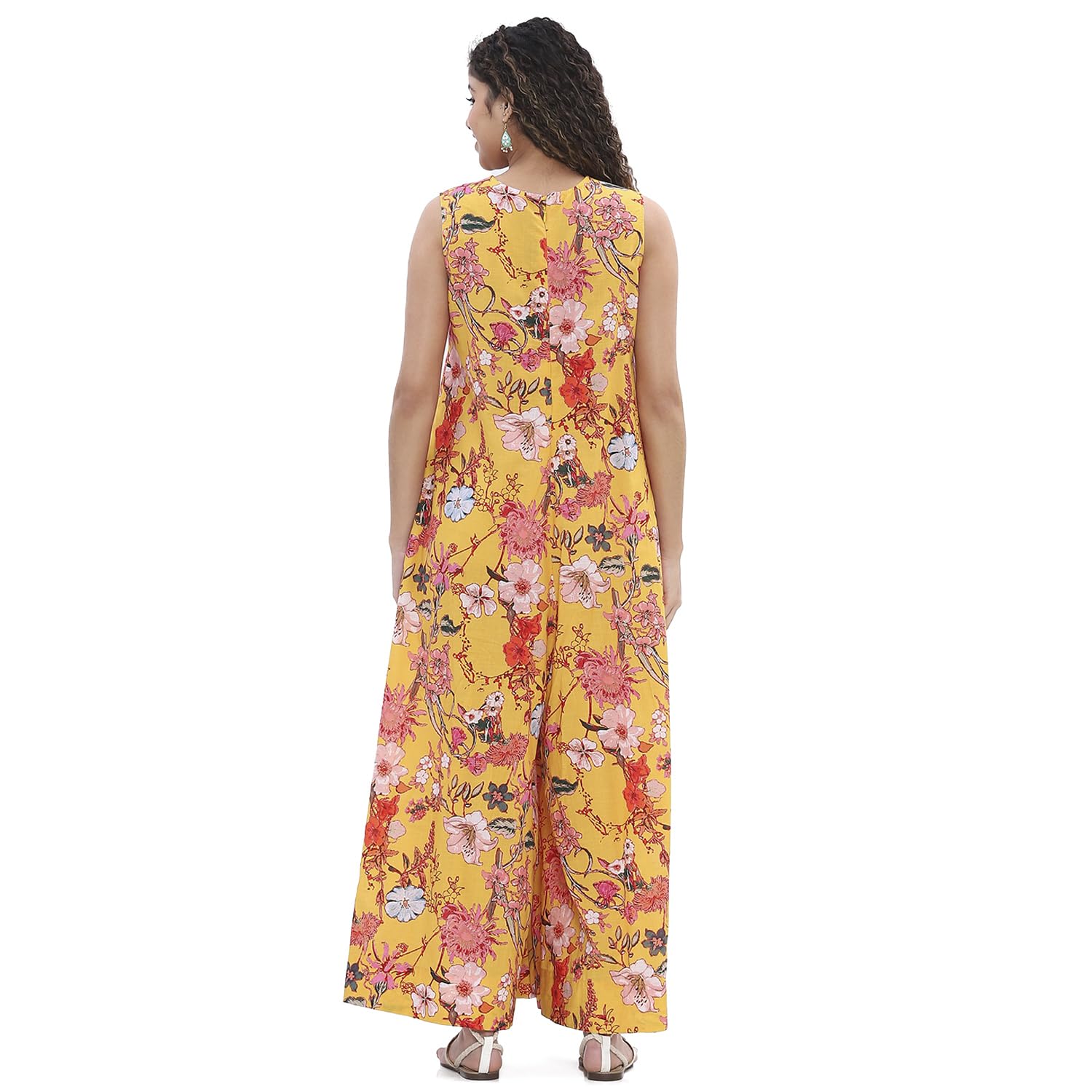 Biba Women Yellow Cotton Straight Printed Jumpsuit
