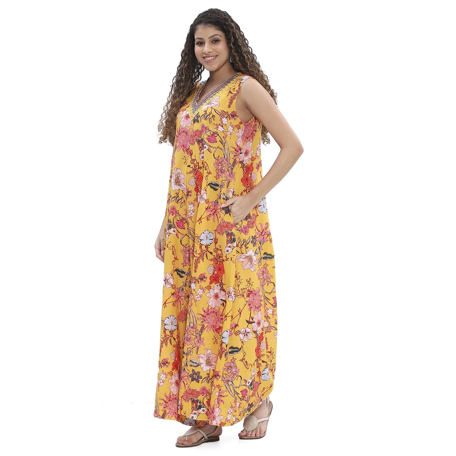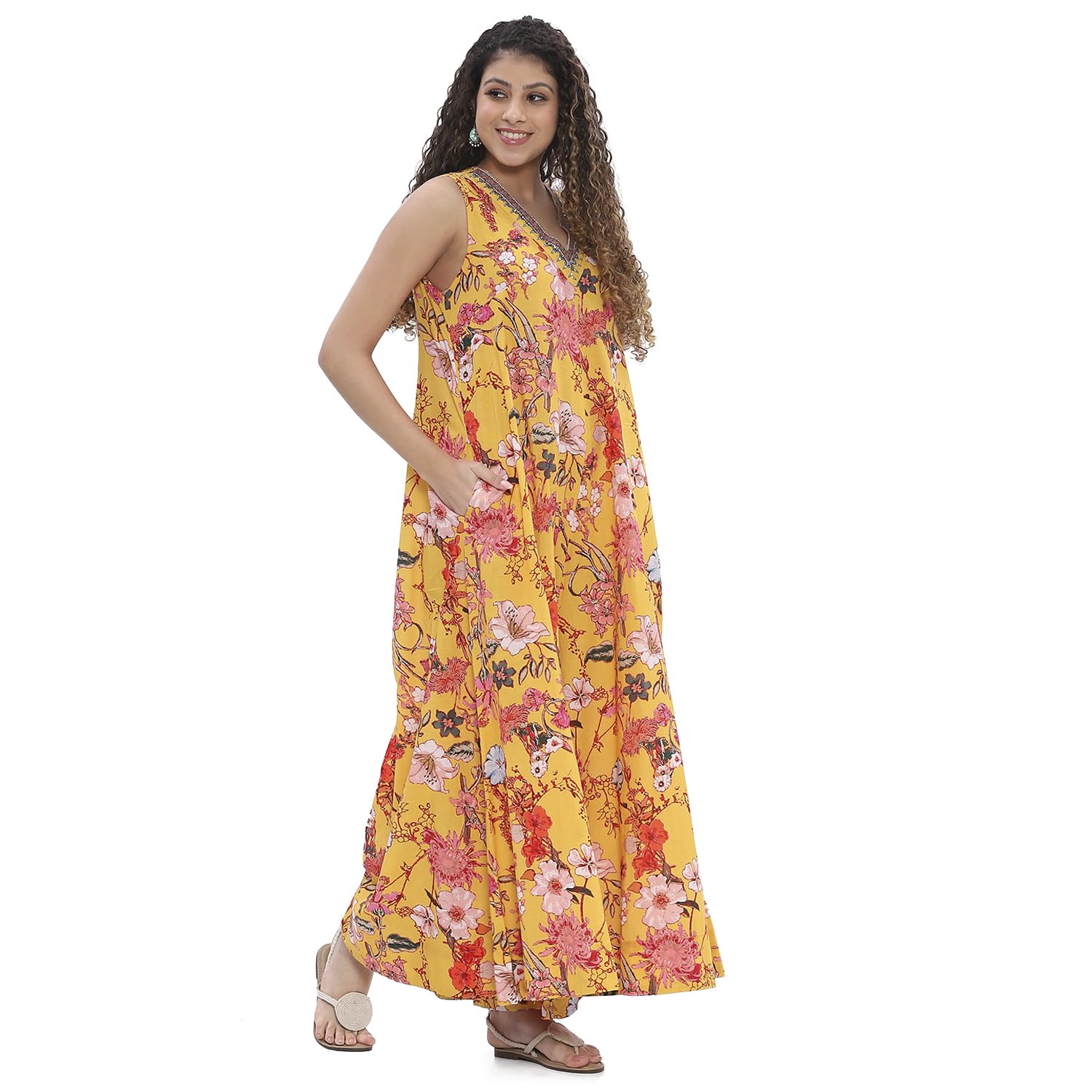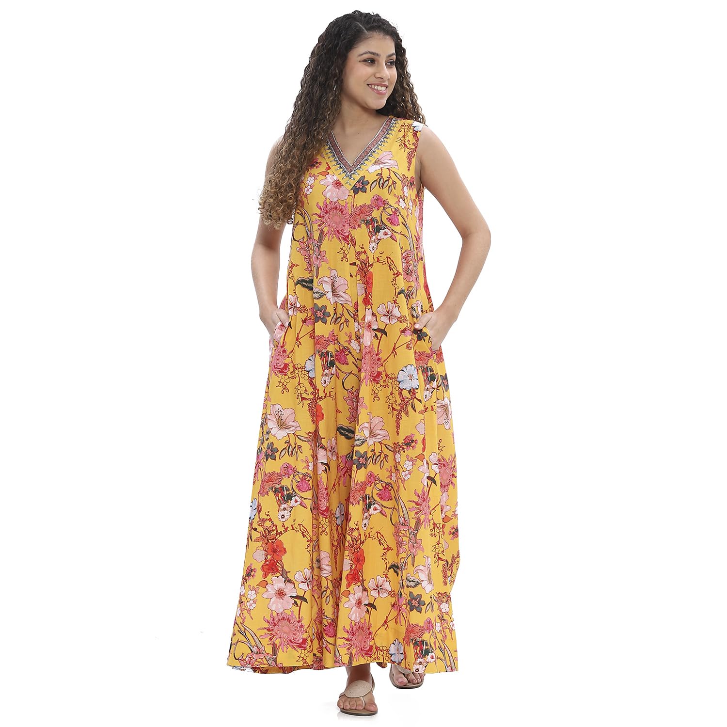 Biba Women's Cotton Straight Floor Length Jumpsuit (SMGR4113SS25YEL_Yellow