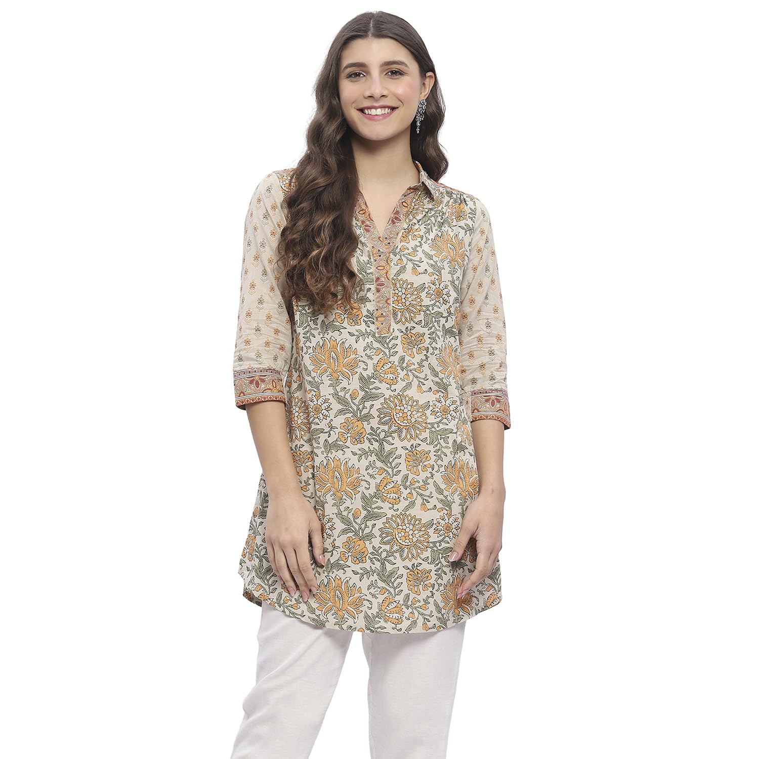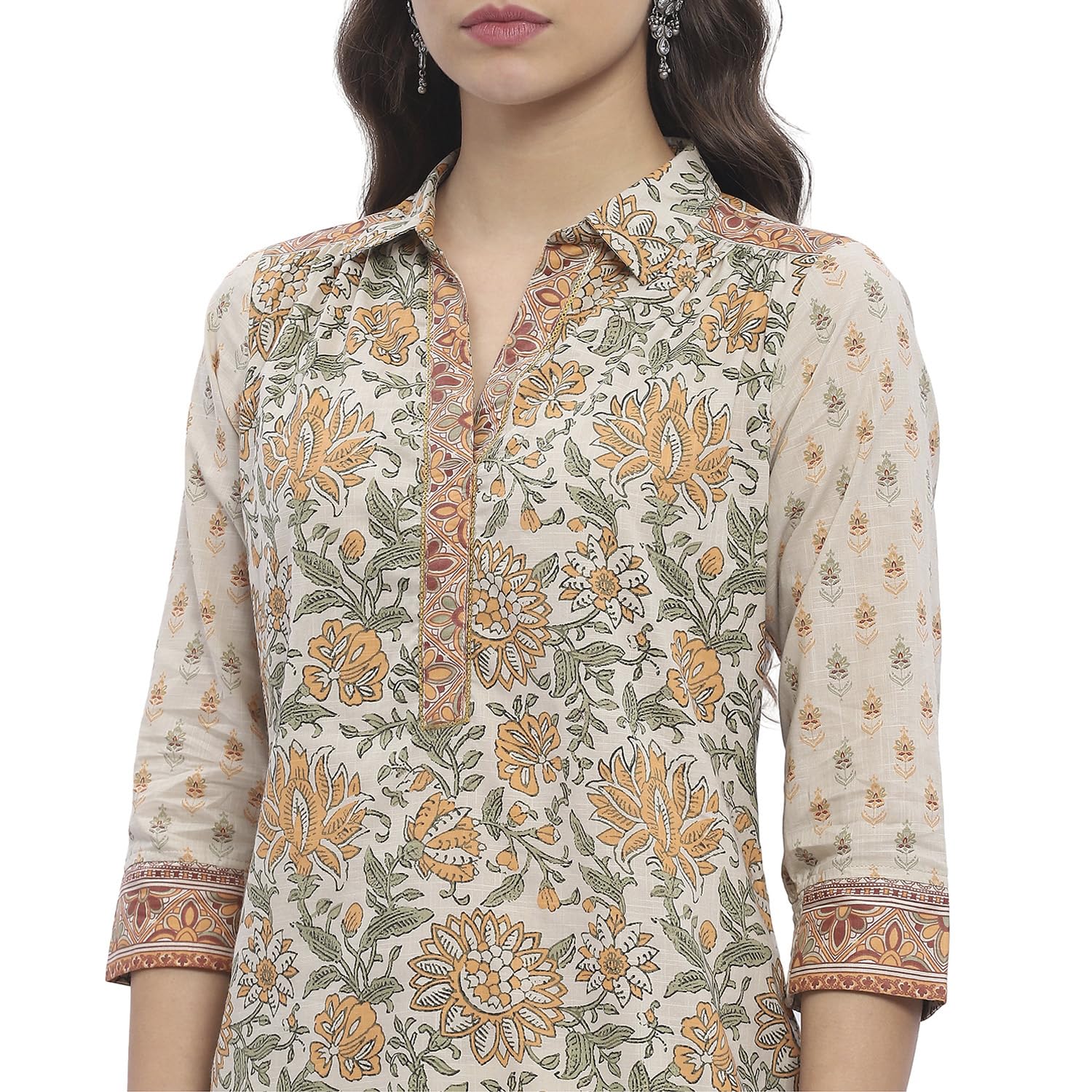 BIBA Women's Honey Beige Cotton Printed Shirt_42