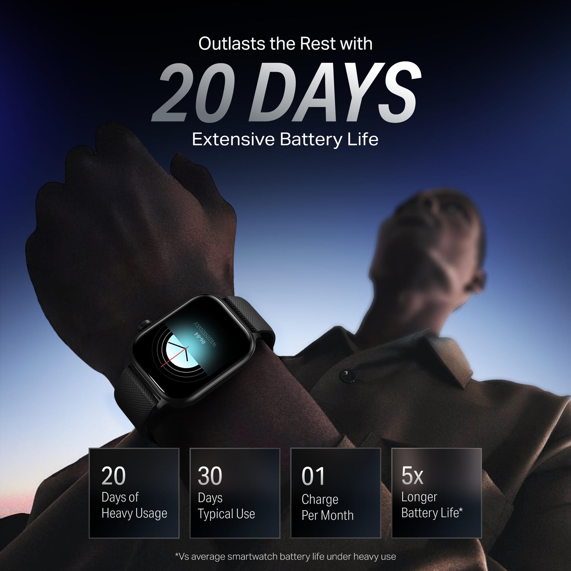 - 20 Days Extensive Battery Life* – Industry’s First: For the first time ever on any smartwatch, Storm Infinity Plus brings you a mega 680 mAh battery that delivers 20 days of heavy use and 30 days with typical usage. That’s up to 5X the battery life of most smartwatches globally.