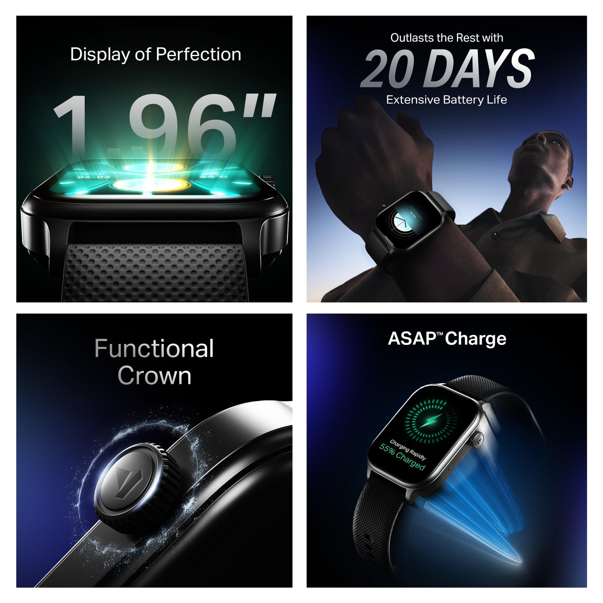 - ASAP Charge – 100% Battery in 60 Minutes: No more daily charging anxiety—just one charge and you’re good for nearly a month. While most smartwatches take up to 2 hours to reach 100%, the ASAP Charge brings Storm Infinity Plus back to full power in just 60 minutes—setting a new benchmark in the category. *Battery life may vary based on usage patterns
