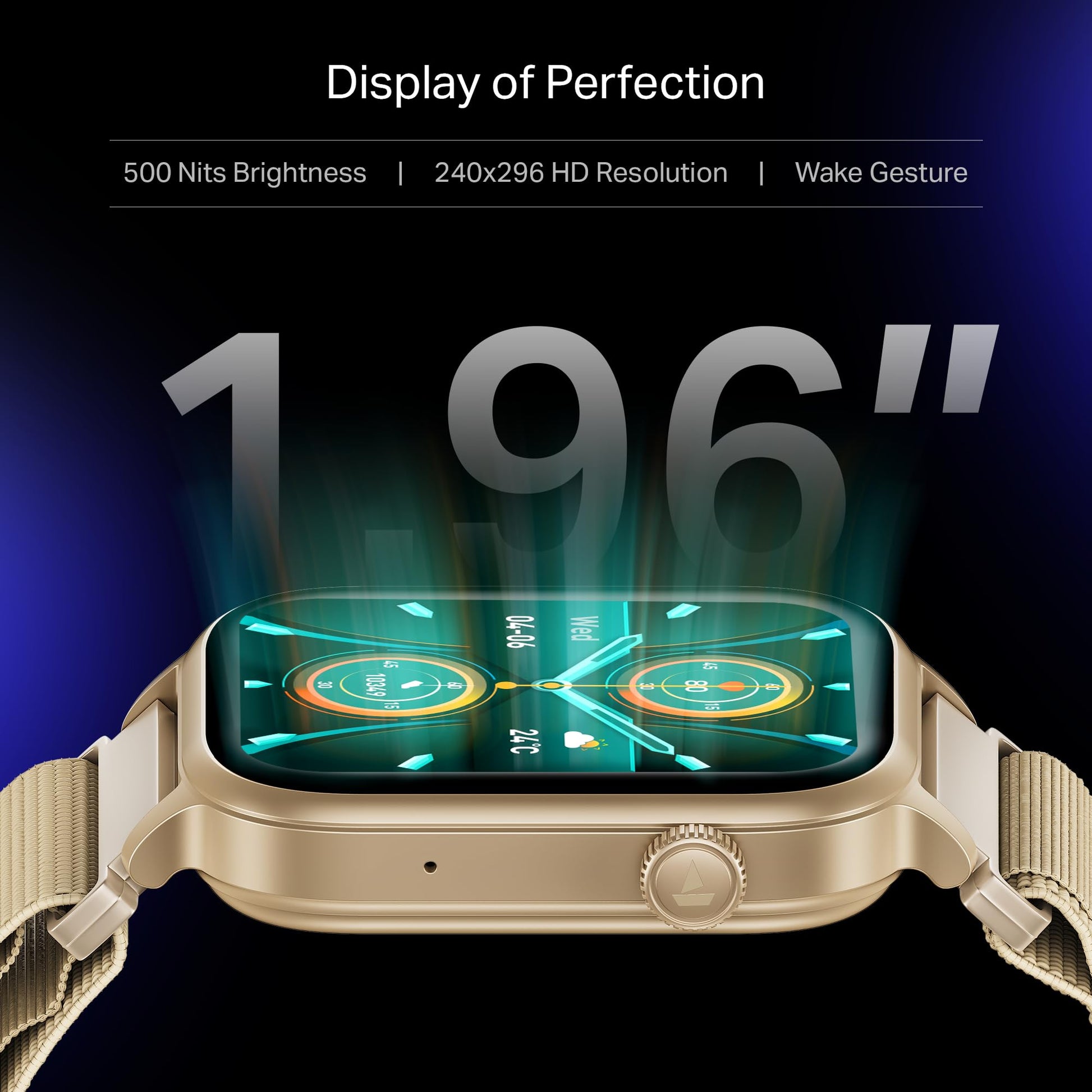 - 1.96” HD Display with Wake Gesture: The bright and responsive 4.97 cm (1.96”) display with 240x296 HD resolution and 500 nits brightness keeps the screen clearly visible even under bright sunlight. And with the intuitive Wake Gesture feature, all it takes is a raise of your wrist to instantly light up the screen. Check notifications, fitness stats, or the time—no taps needed.