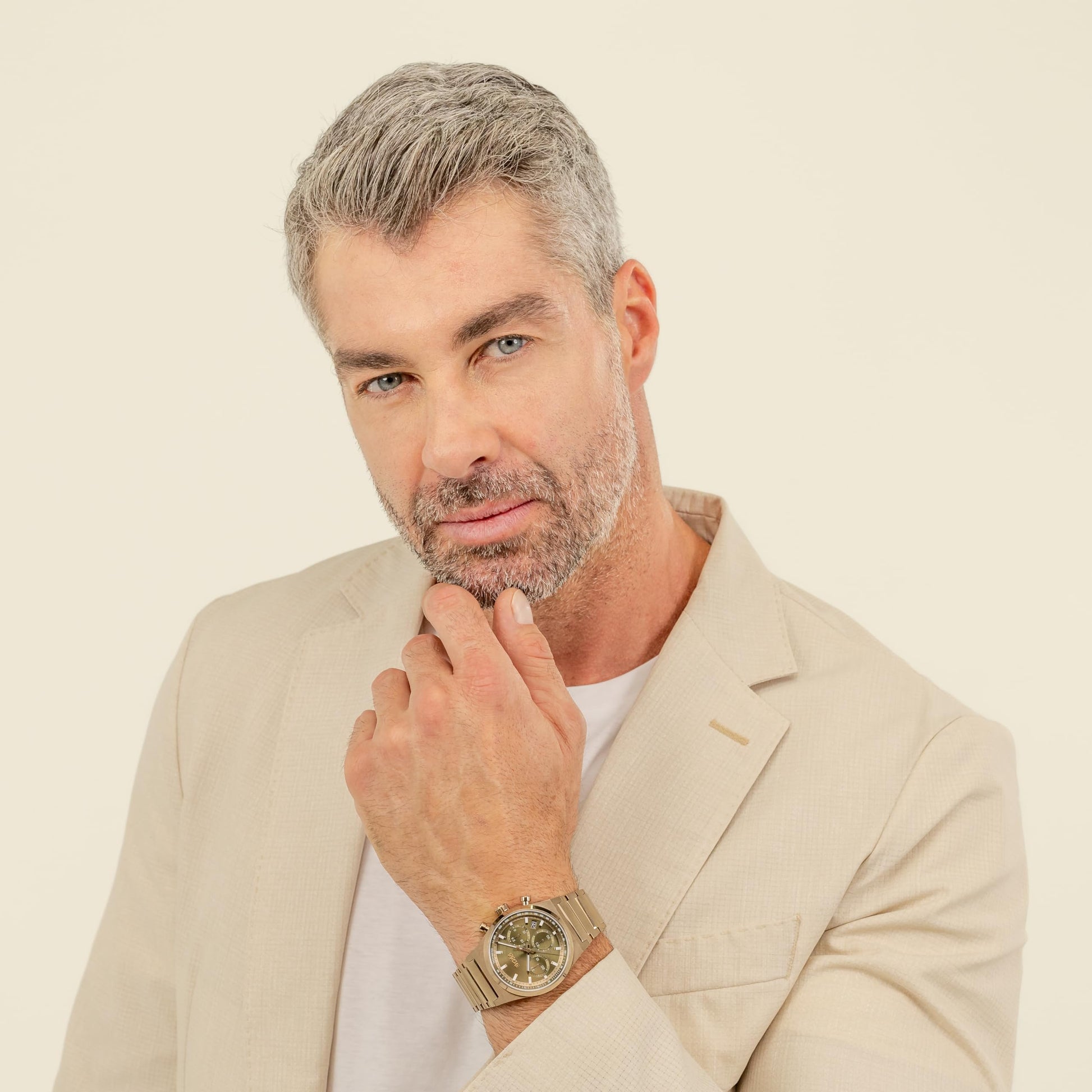 BOSS Candor Chrono Qtz Fashion Chrono Olive Green Round Dial Men's Watch|Ionic Plated Beige Gold Steel Material|Gold Color Band - 1514222