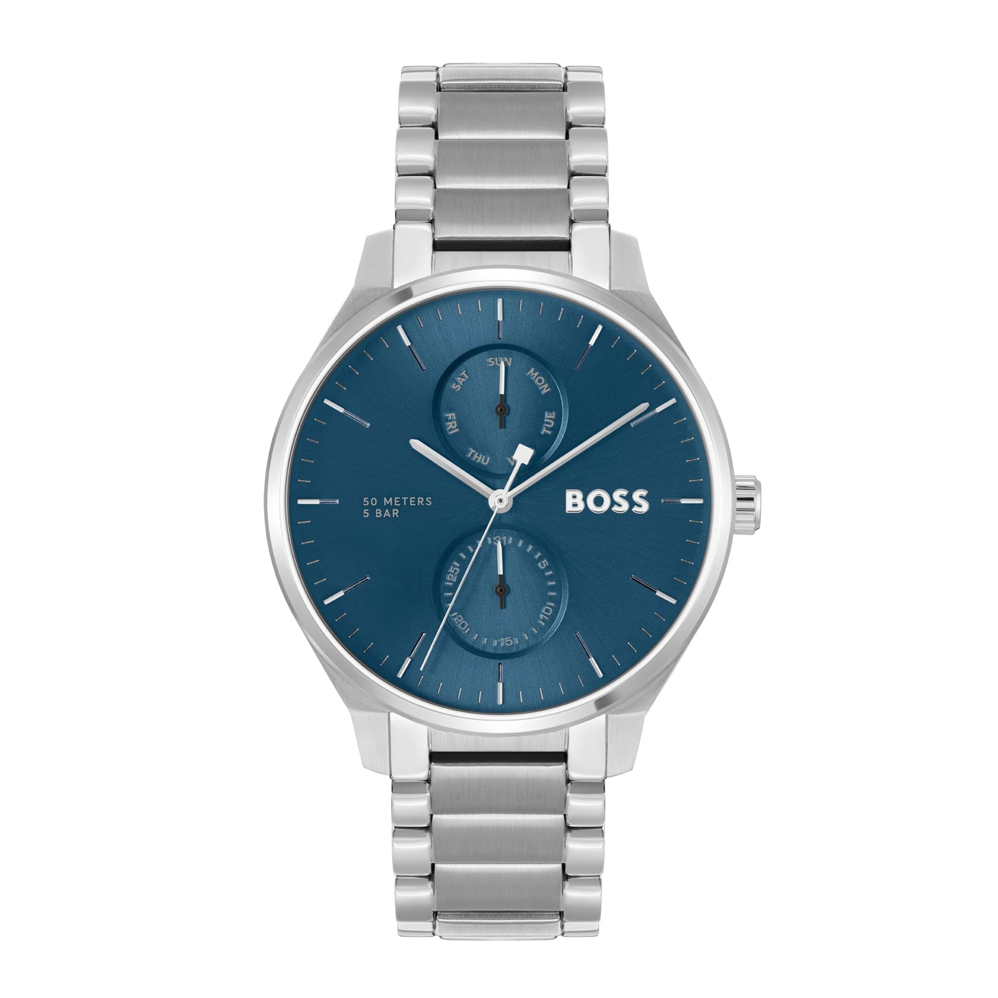 BOSS Tyler Qtz Multifunction Blue Sunray Round Dial Men's Watch|Stainless Steel Material|Silver Color Band - 1514106