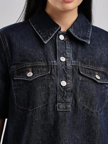 Calvin Klein Jeans Women's Cotton A-Line Above The Knee Casual Dress (47B073G401_Dark Ck Blue