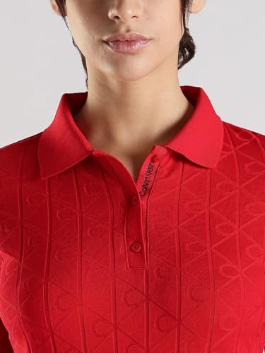 Calvin Klein Jeans Women's Cotton T-Shirt Above The Knee Casual Dress (47D228G600-M_Berry Sangria