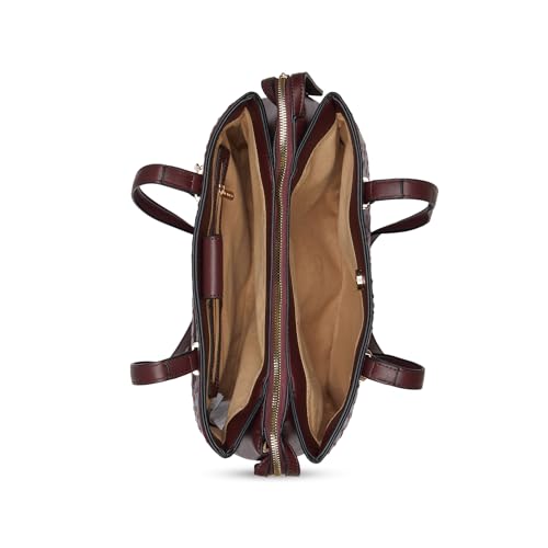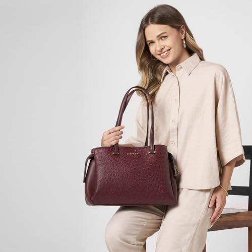 Caprese Britney Large Satchel Bag for Women | Premium Animal Texture Faux Leather Shoulder Bag | Stylish Office & Casual Handbag | Spacious Tote with Zipper & Magnetic Button Closure (Cherry Lacquer)