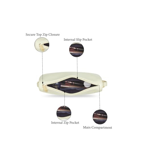 Caprese Carol Medium Sling Bag for Women with Adjustable Strap & Zipper Closure for Comfortable Wear | Versatile Handbag for Everyday Use, Travel, and Special Occasions (Off-White)
