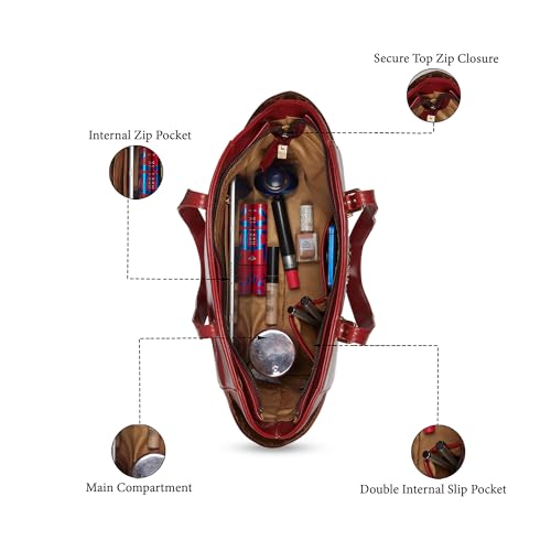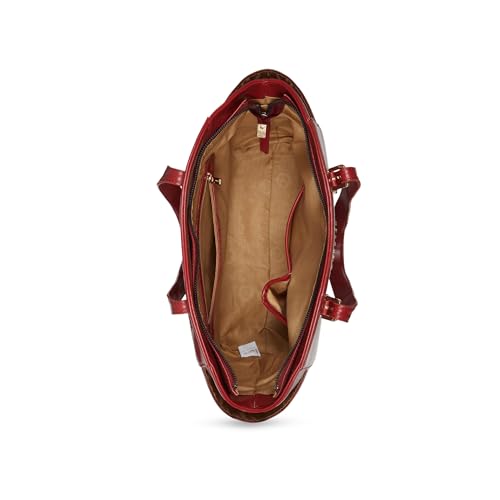 Caprese Macie Medium Alpine Oat Tote Bag for Women | Solid Faux Leather Shoulder Handbag with Spacious Interior & Zipper Closure | Fits Up to 16-Inch Laptop | Office & Travel Use (Cherry Lacquer)