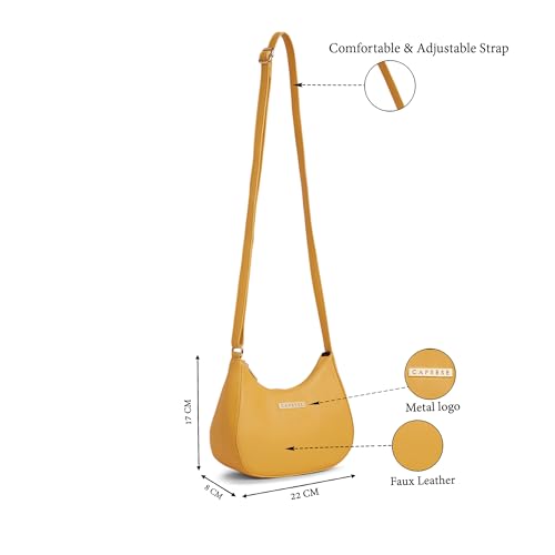 Caprese Omni Small Sling Bag for Women with Adjustable Strap & Zipper Closure for Comfortable Wear | Versatile Handbag for Everyday Use, Travel, and Special Occasions (Ochre)