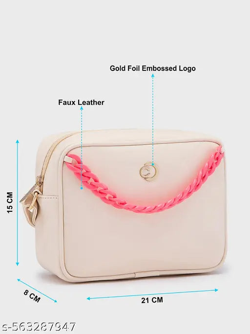 Caprese Perline Sling Bag for Women with Adjustable Strap, Versatile Handbag for Everyday Use, Travel, and Special Occasions (Medium, Beige)