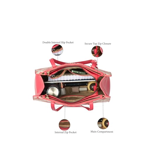 Caprese Shibori Large Tote Bag for Women | Printed Faux Leather Shoulder Bag with Multi-Compartments | Zipper Closure | Includes Detachable Charm | Stylish Everyday Bag (Pink)