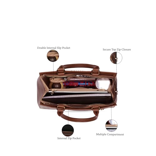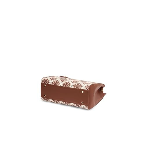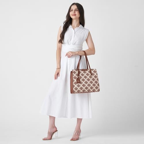 Caprese Shibori Medium Satchel Bag for Women | Printed Faux Leather Shoulder Bag with Adjustable & Detachable Strap | Multi-Compartments | Zipper Closure | Everyday Office, Travel & Casual Use (Brown)