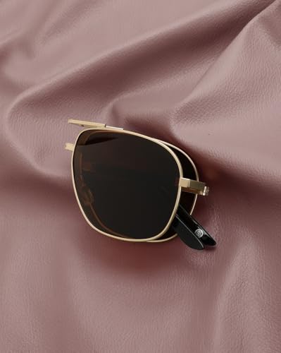 Carlton London Gold with Black Toned Brown Polarised Lens Foldover Rectangle Sunglass for mens