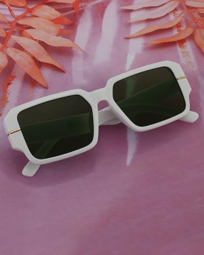 Carlton London White with Gold Toned and Green UV Protected Lens Sunglass for unisex