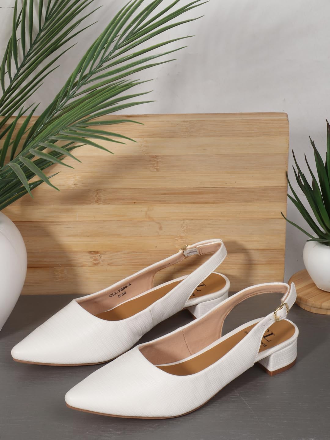 Carlton London Women White Stylish Slip On Shimmer Backstap Fashion Sandals for Casual use, Outdoor, Party and Holidays with Block Heels (39)