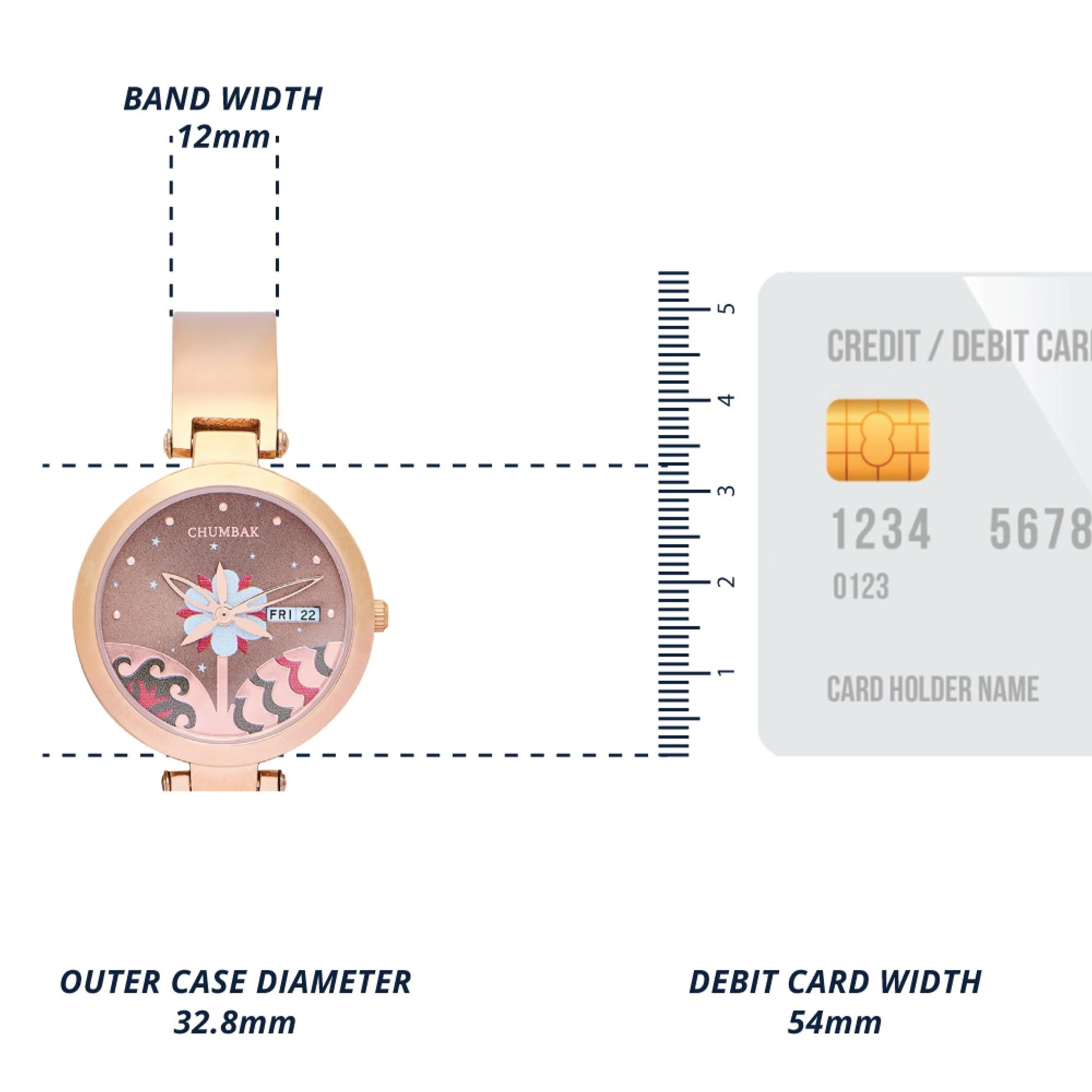 Chumbak Bloom Metal Watch | Rosegold with Brown Dial|Stylish Fashion Watch for Casual/Work|Gifts for Women/Girls/Ladies|Wrist Watches for Women