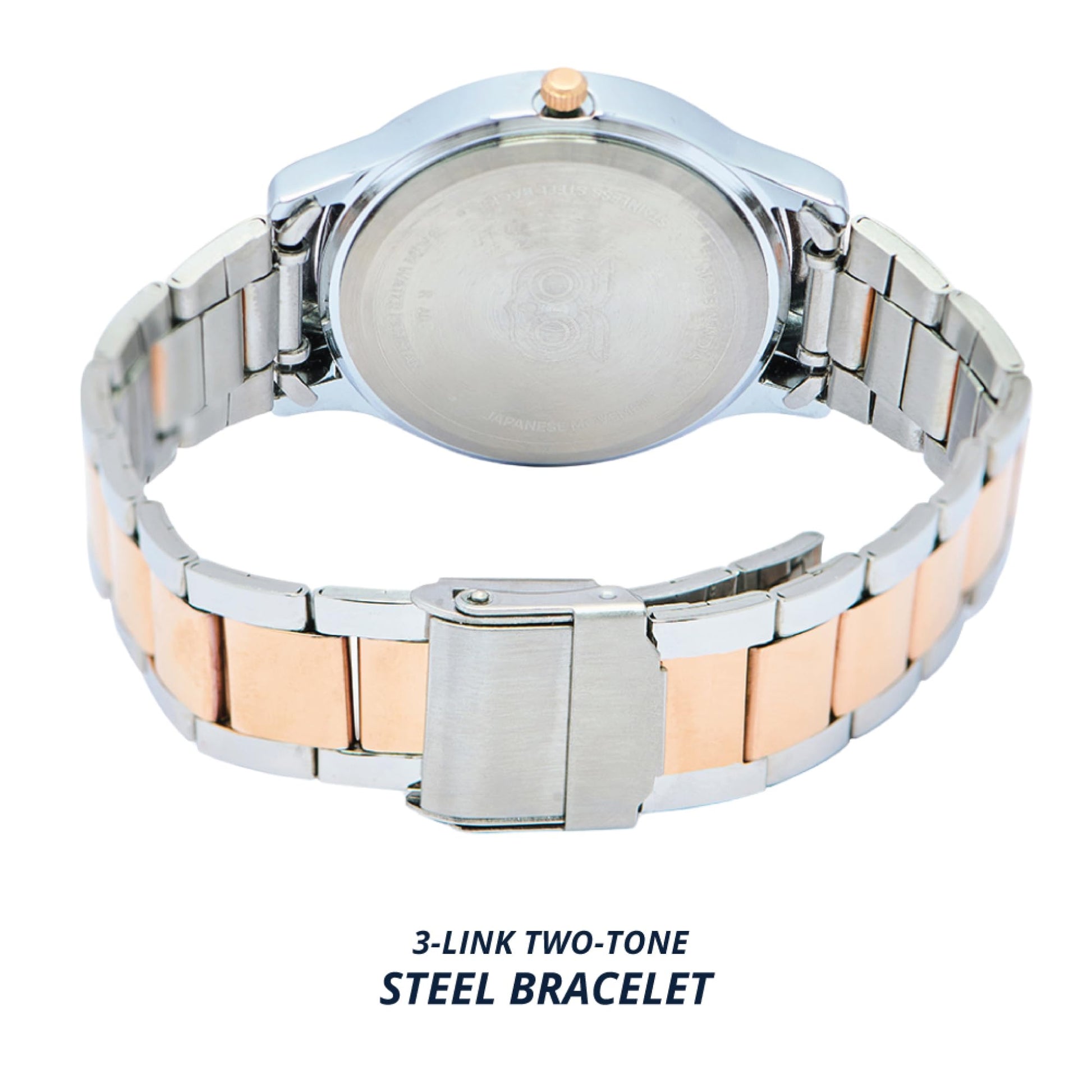 Chumbak Ocean Owl Monogram Metal Watch | Steel & Rosegold Strap with Teal Dial|Stylish Fashion Watch for Casual/Work|Gifts for Women/Girls/Ladies|Wrist Watches for Women