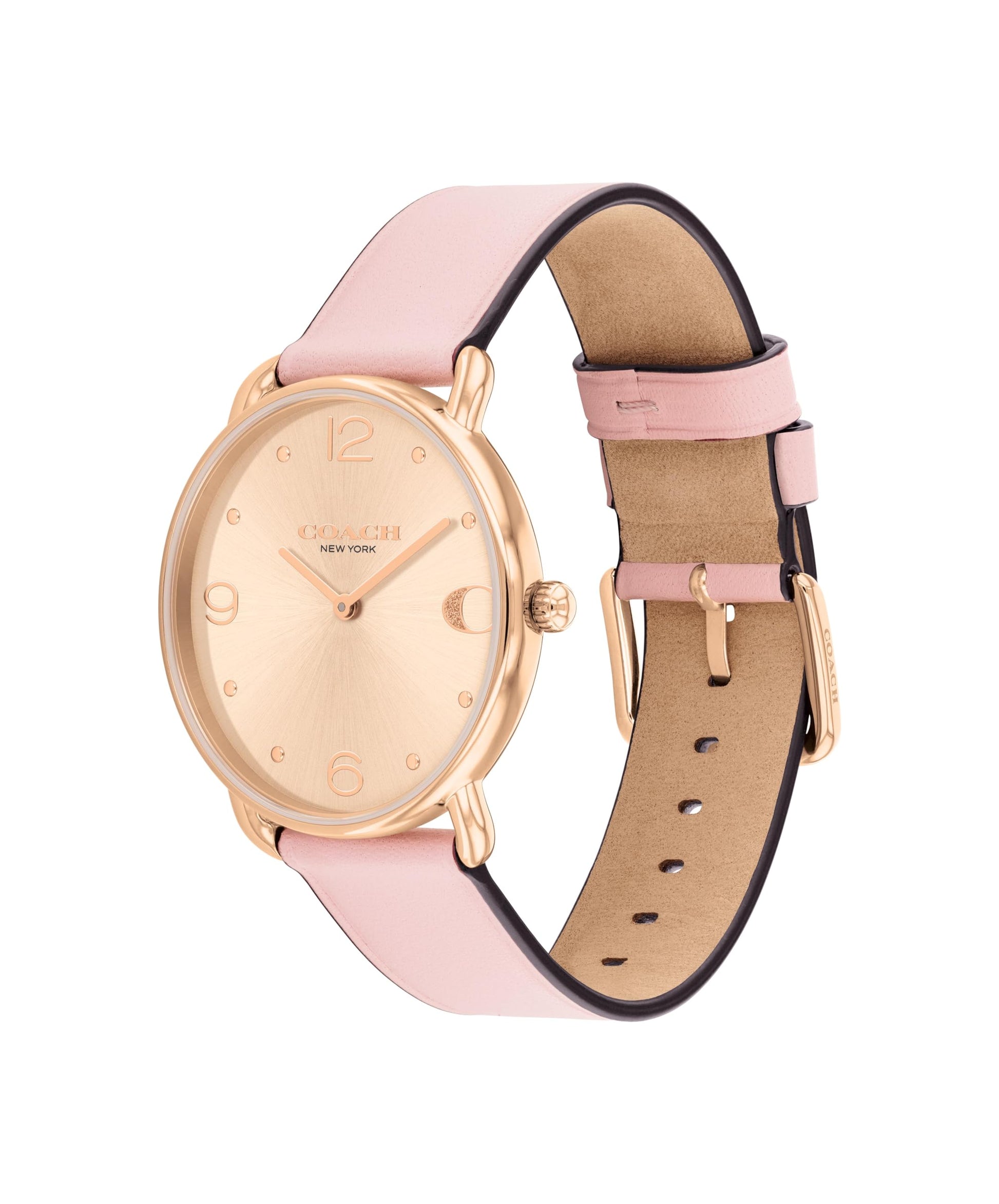 Coach Elliot Qtz Basic Rose Gold Round Dial Women's Watch|Pink Calfskin Material|Pink Color Band - 14504288