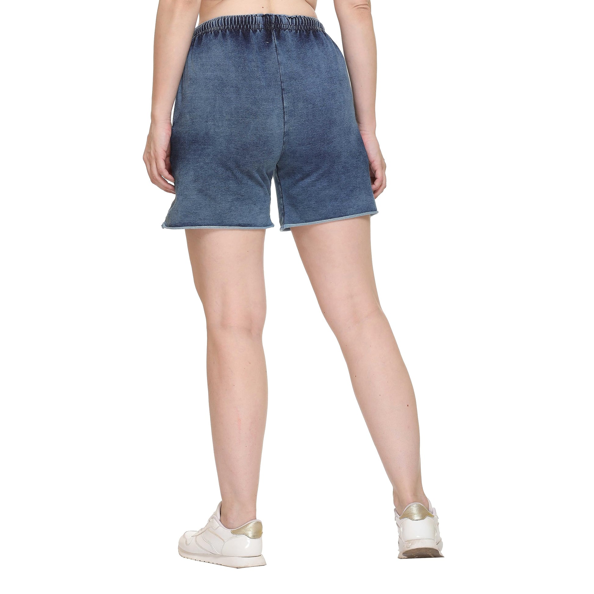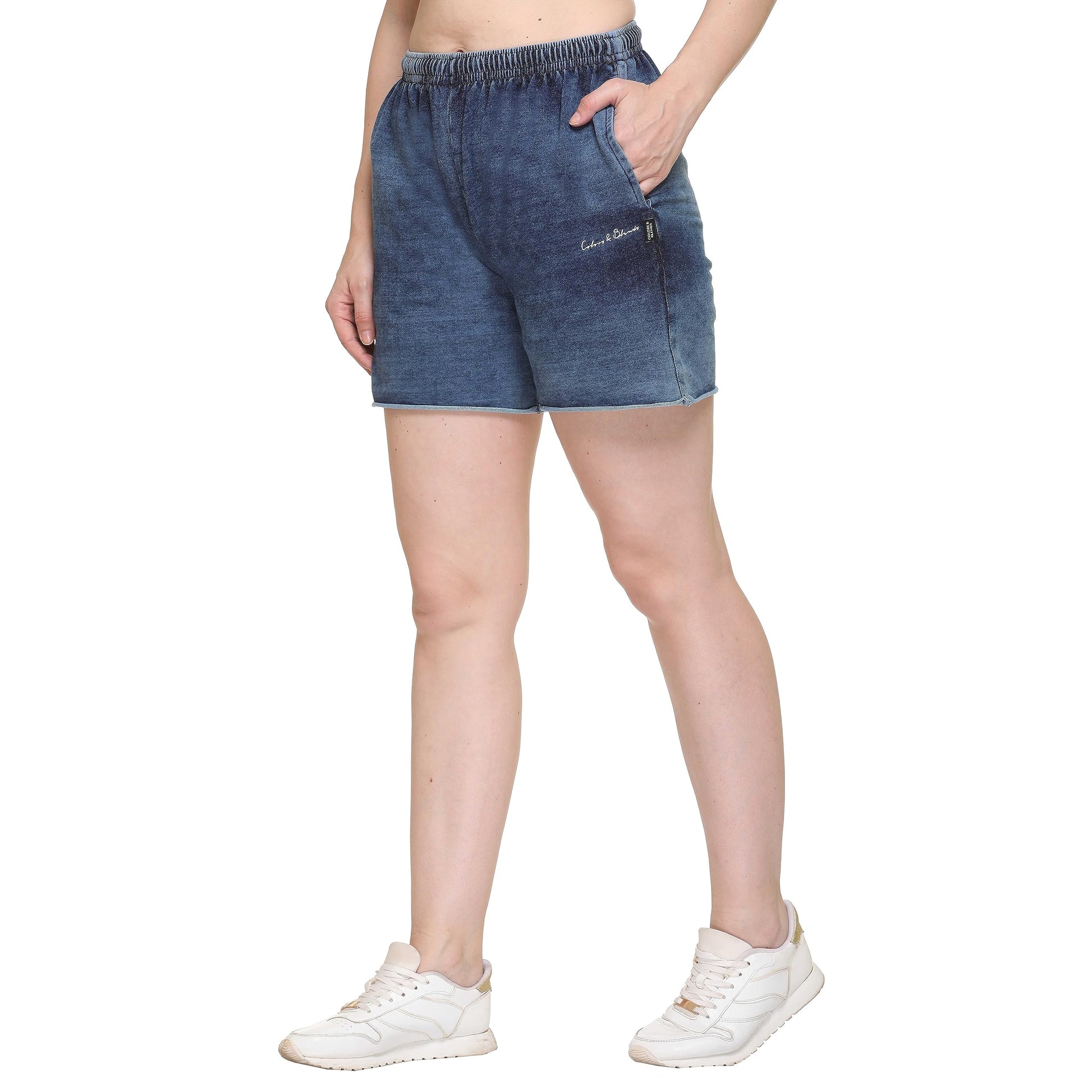 Colors & Blends - Women's Indigo Lycra - Knitted Denim Shorts (SG-01 : Size - S)