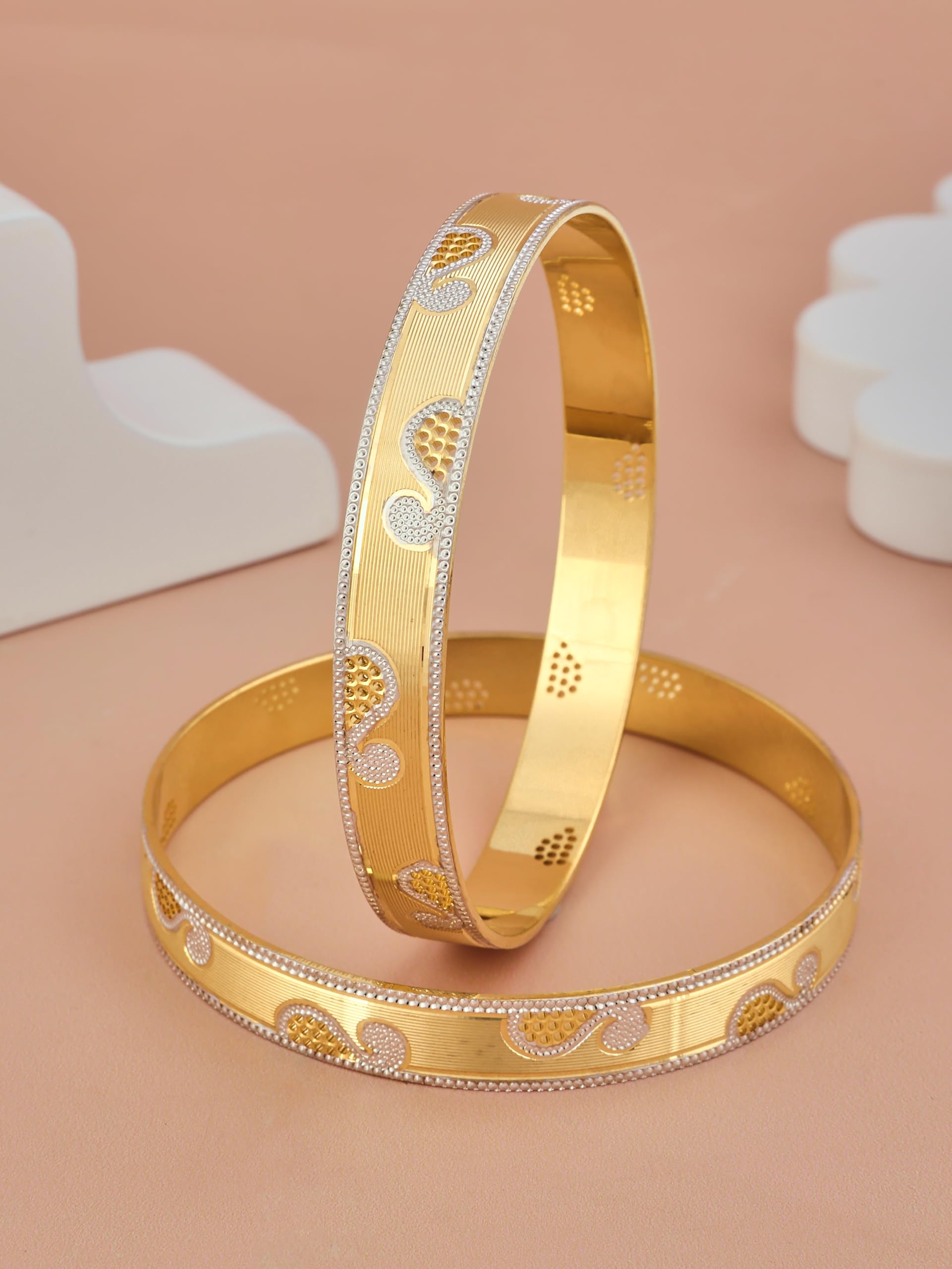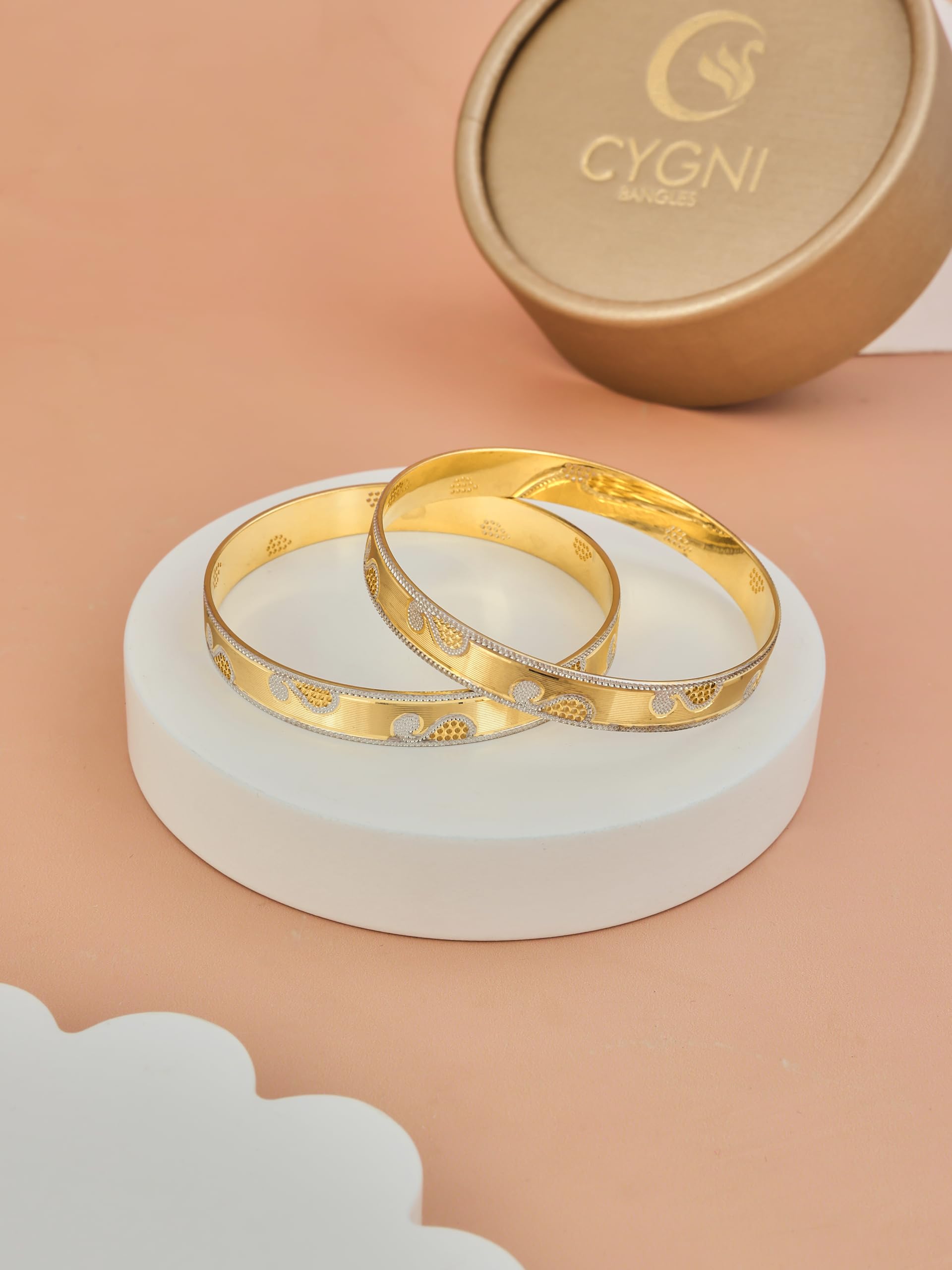 CYGNI BANGLES Elegant Gold-Plated Bangles for Women Traditional Design Jewelry (1 Pair)(F2-B-06-2.8)