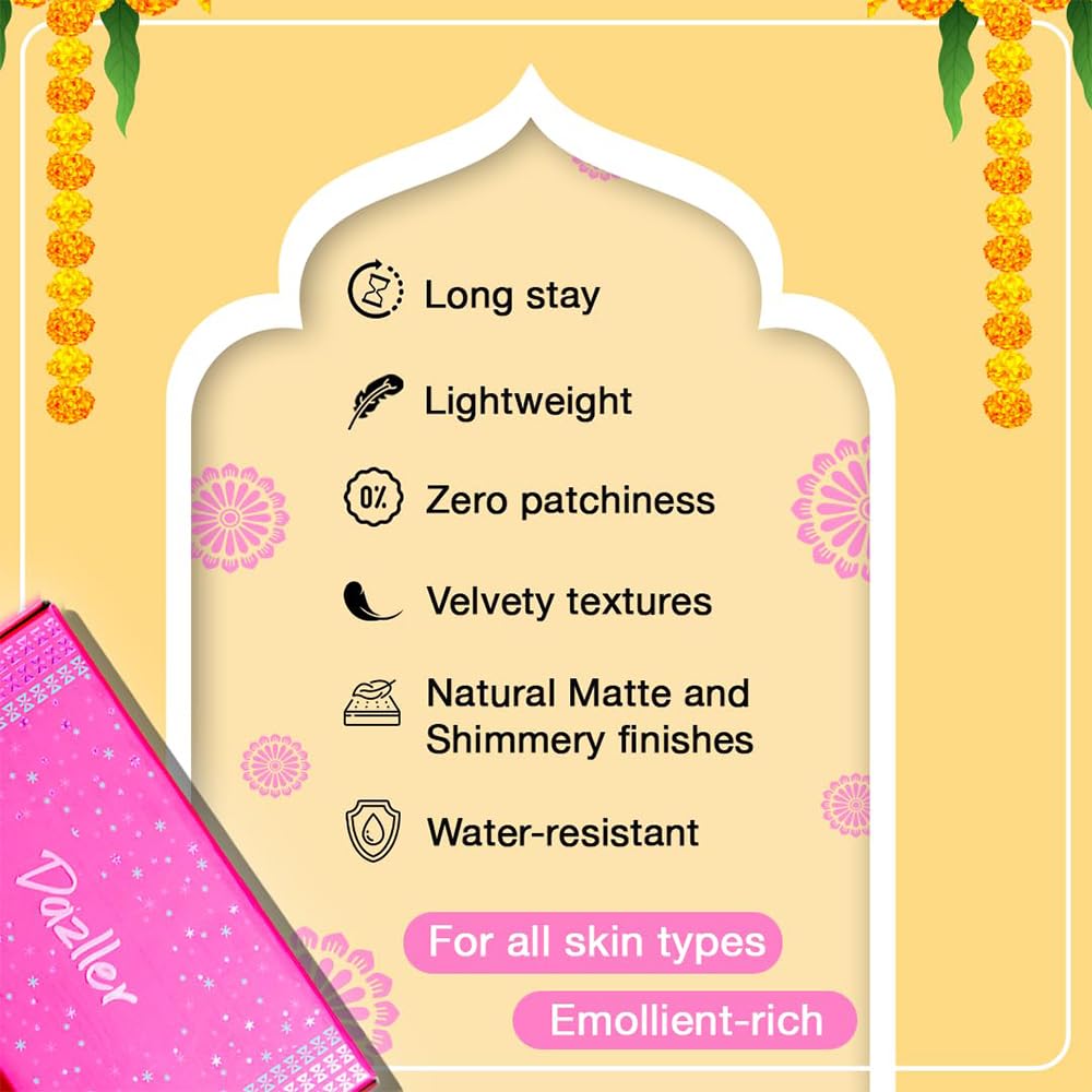 Dazller Grand Glam Kit - Medium Skintone, All-in-One Makeup Set with Primer, Liquid Foundation, Kajal, Mascara, Eyeshadow & More, Long-Stay, Lightweight, Water-Resistant, Suitable for All Skin Types