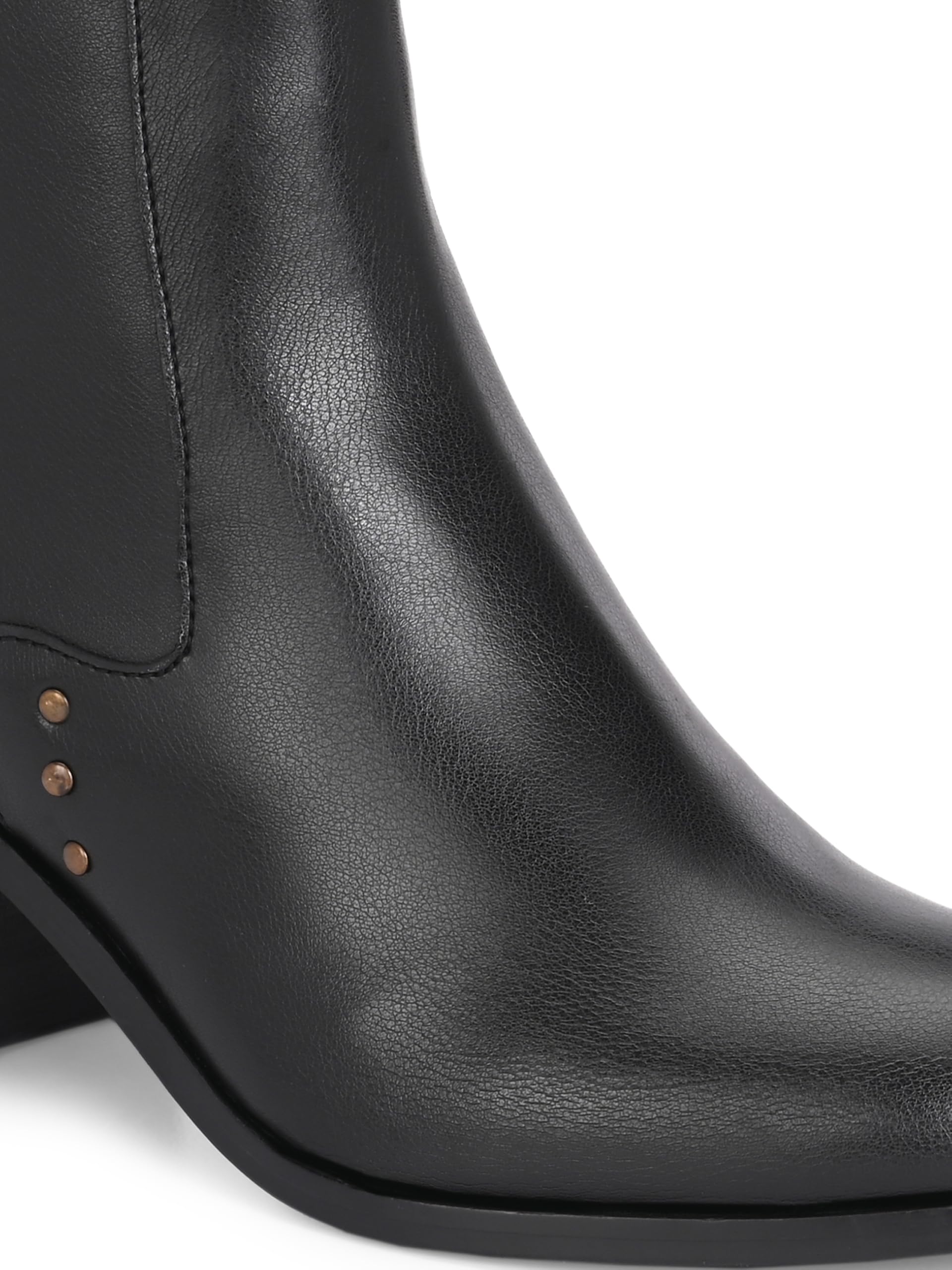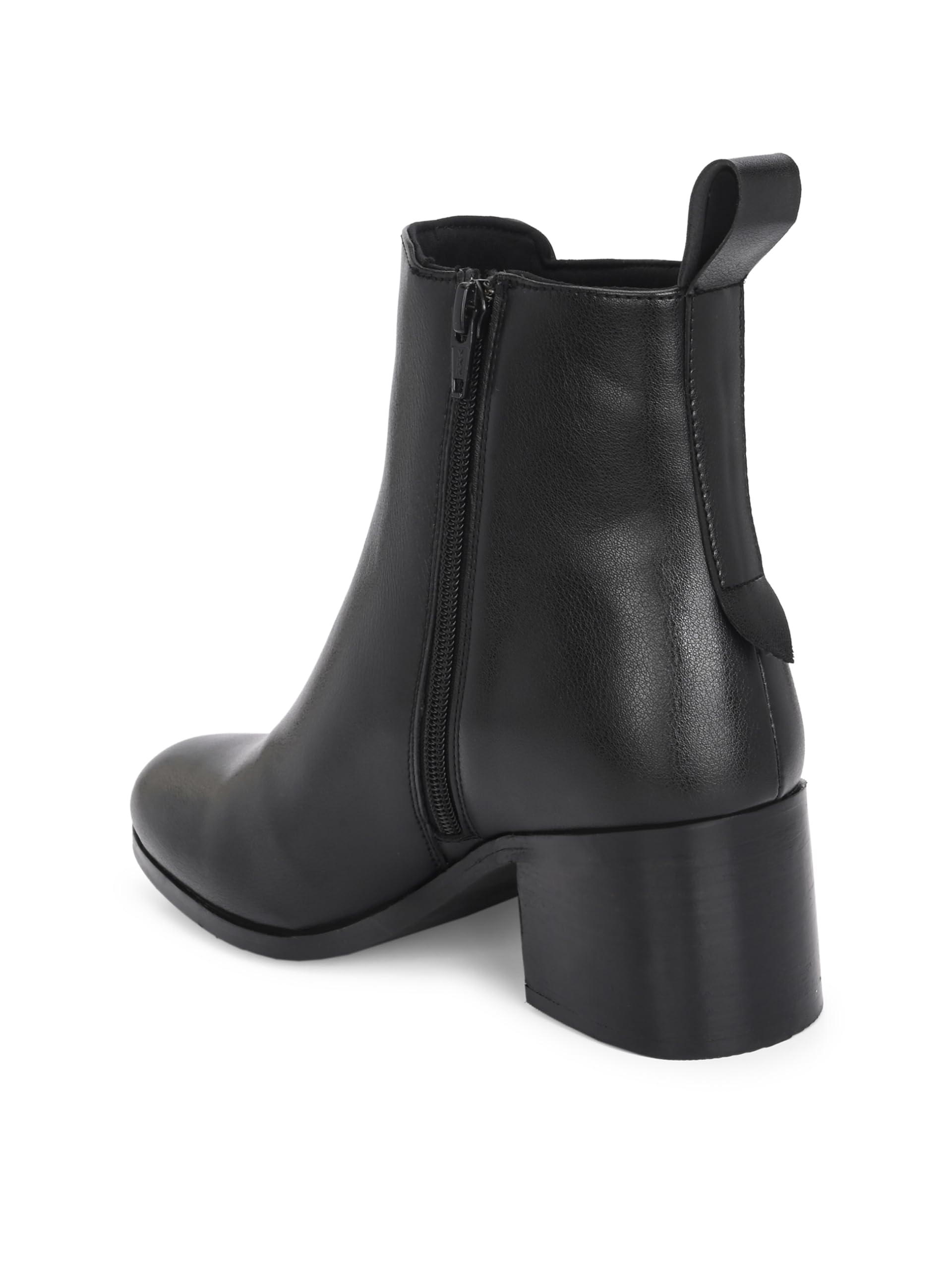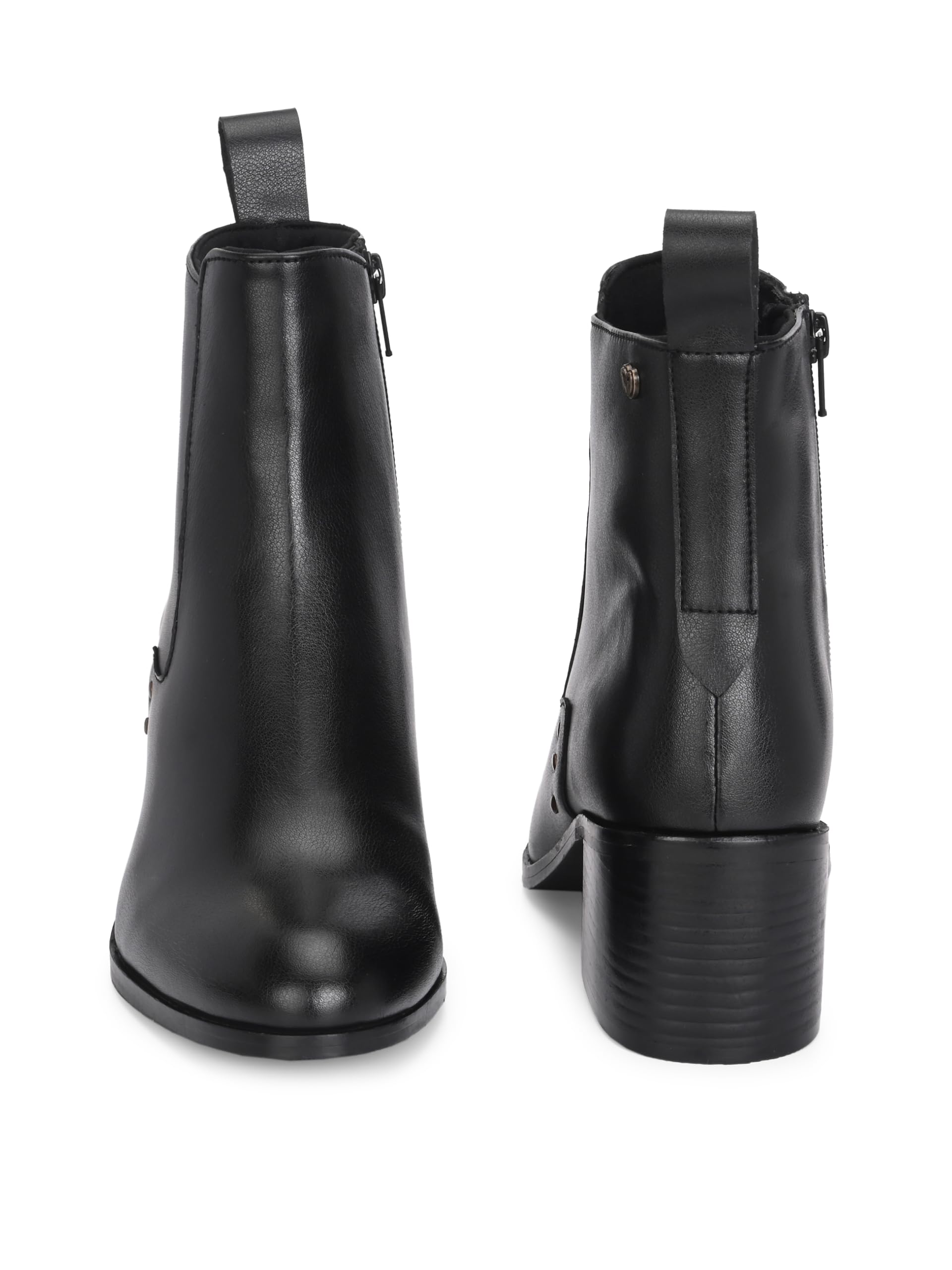 Tan women vegan leather, mid heel ankles boots with handmade outsole n inside zip to wear easily. Has back loop n rivet detail. Fabric lining and memory foam insock for ultimate comfort.Heel height - 2.36 inches