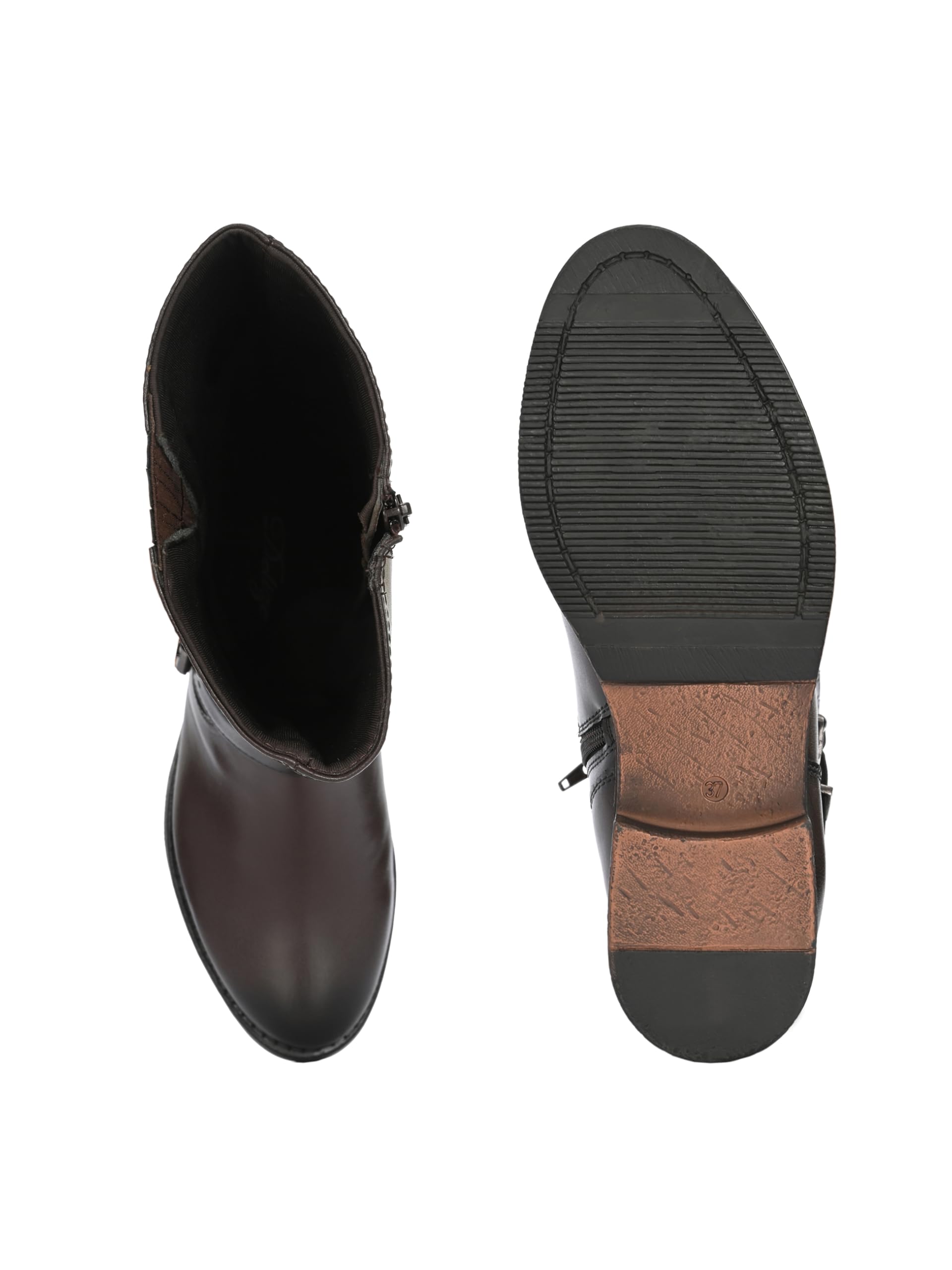 women’s mid heel Faux leather knee boots . Fabric lining and memory foam insock for ultimate comfort