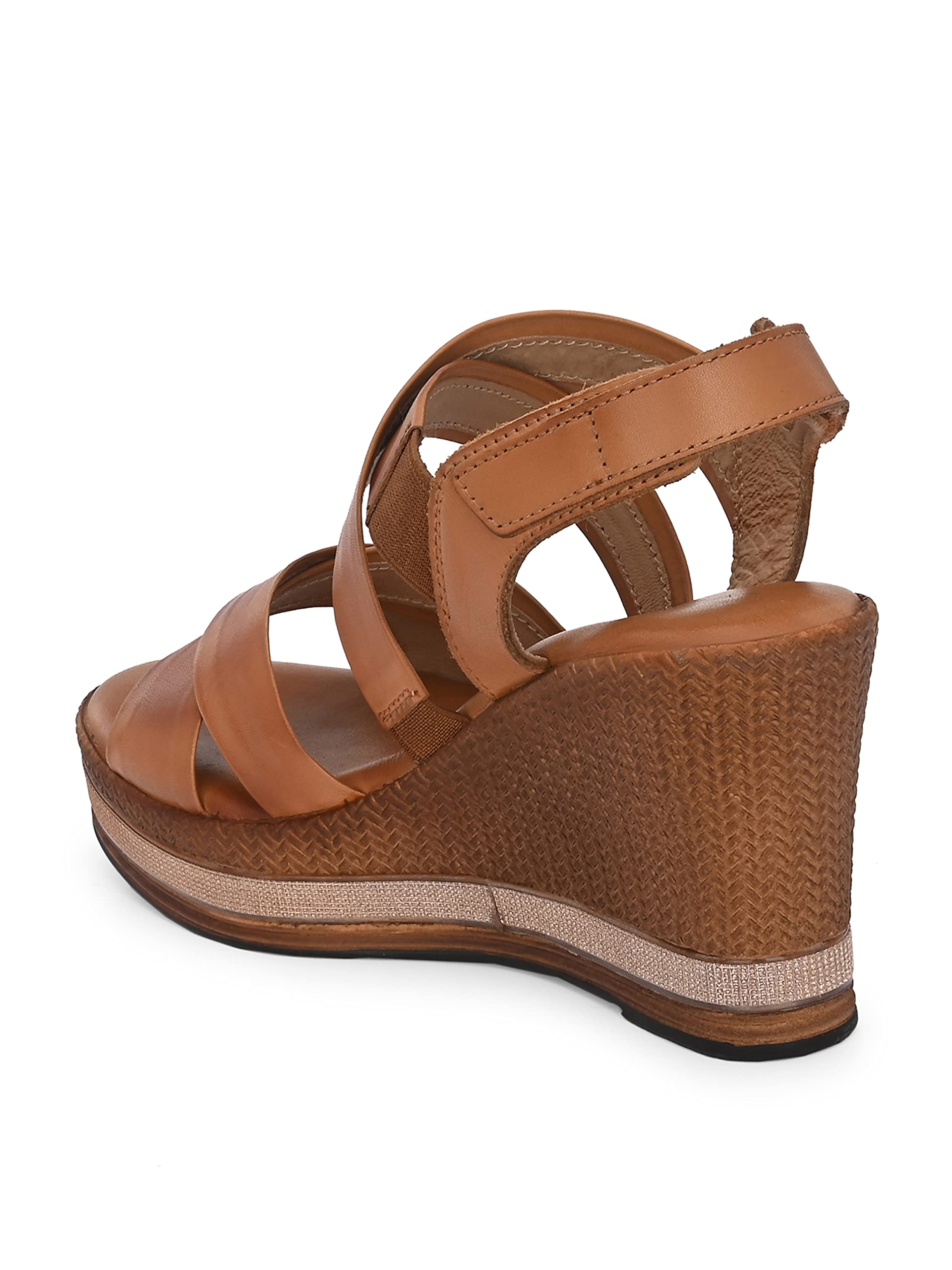 Delize Light Leather - Tan leather and multi coloured jute women cross strap Sandal,64252 41