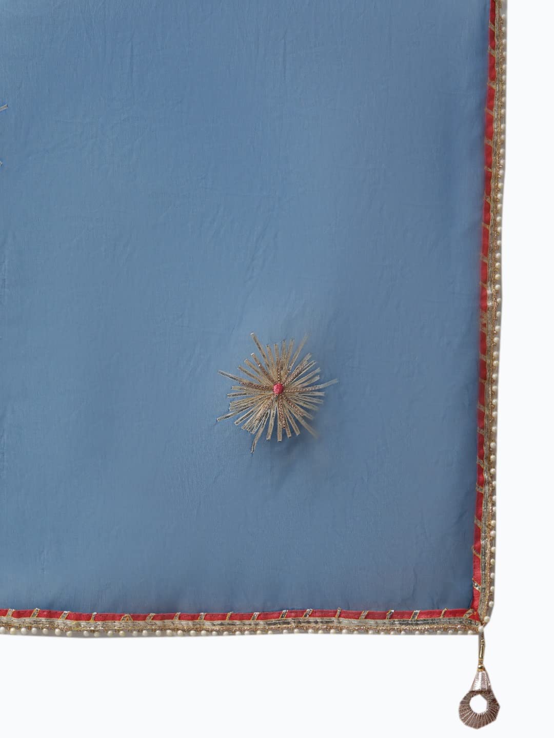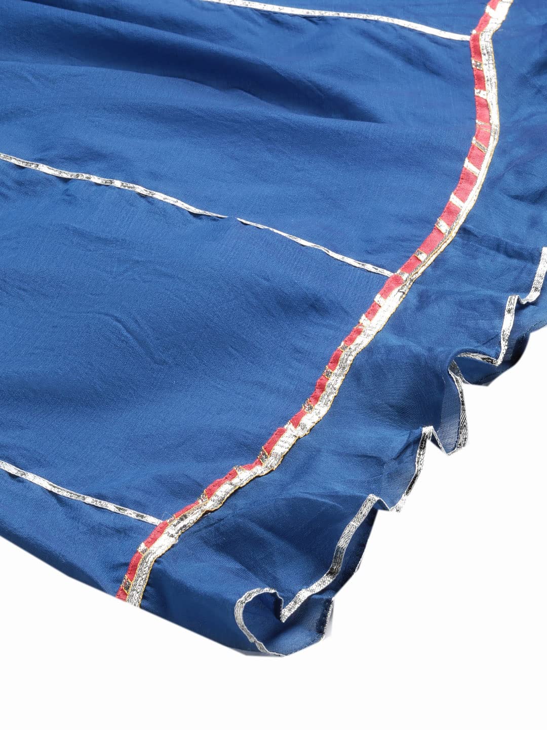 Divena Blue Solid Chenderi Kurta Skirt Set with Dupatta-DK0739-5XL