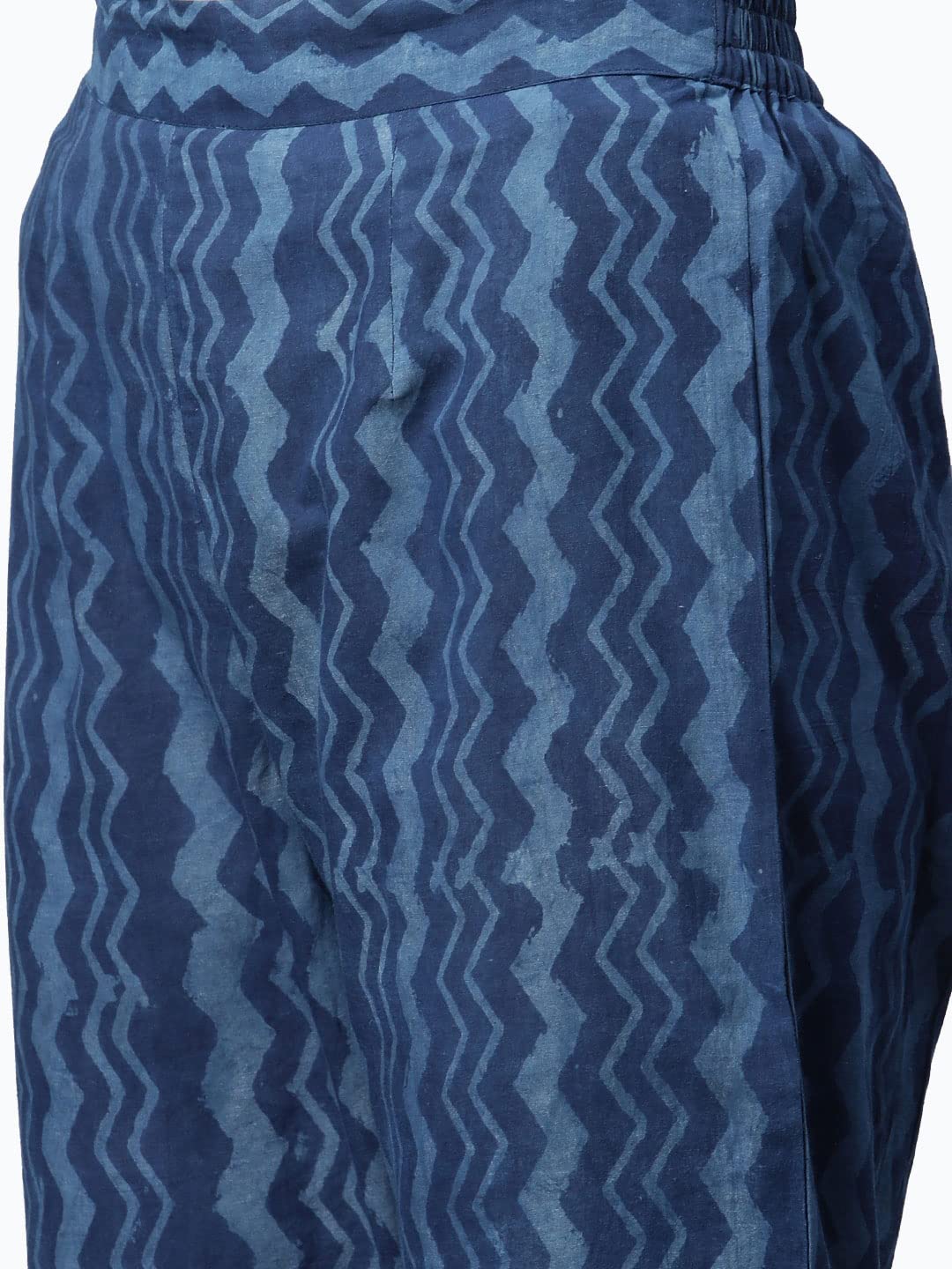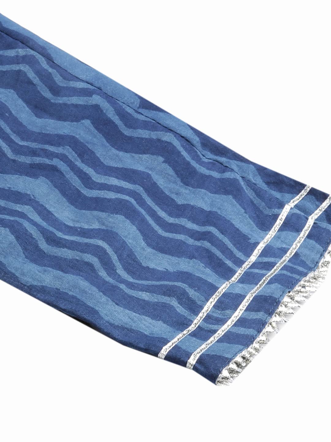 Divena Indigo Hand Block Printed Anarkali Kurta Pant Set with Dupatta-DK0747-3XL