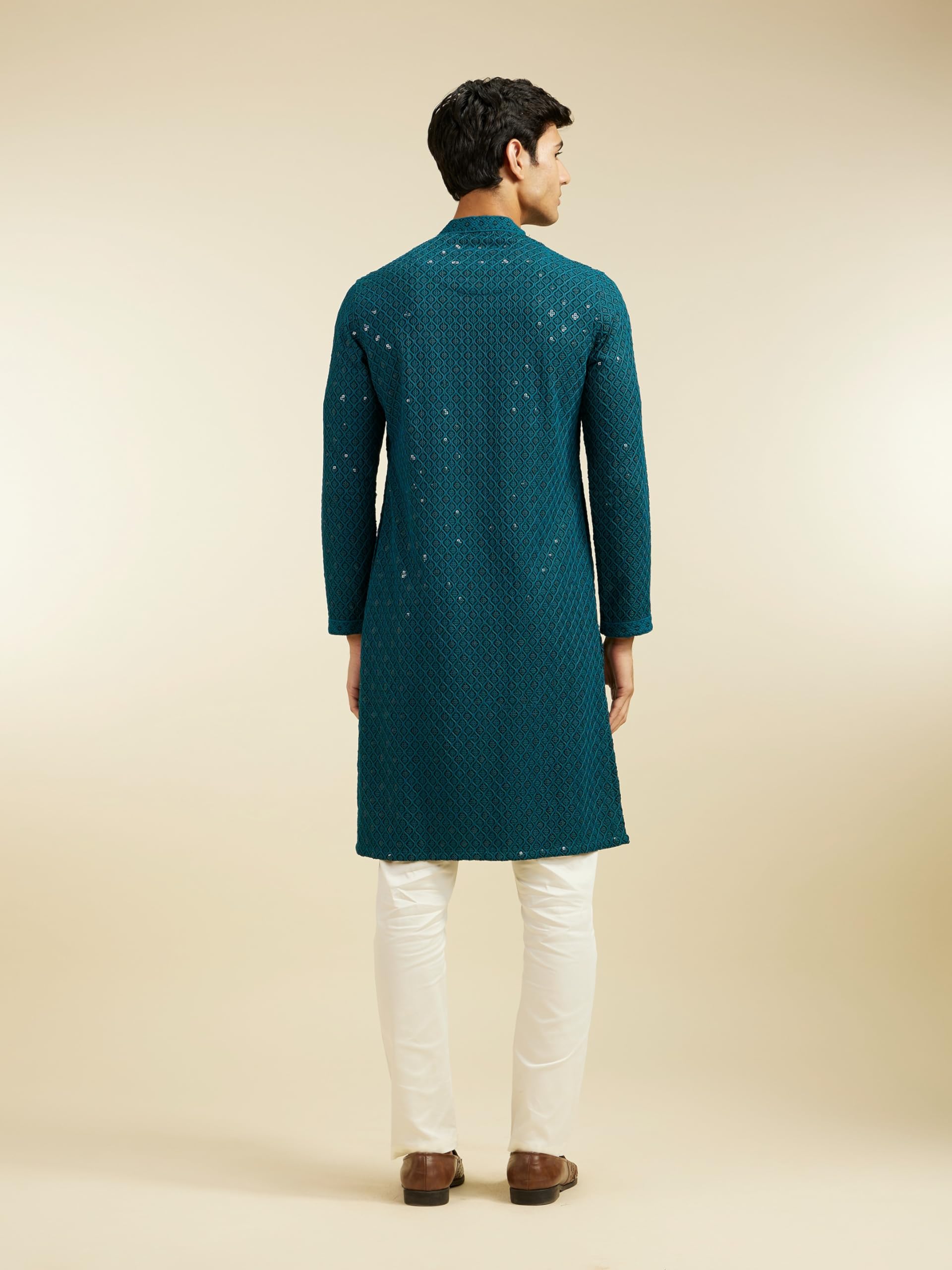 DIWAS BY MANYAVAR Men's Viscose Embroidery|Sequin Work Kurta Set (Teal Green,S)